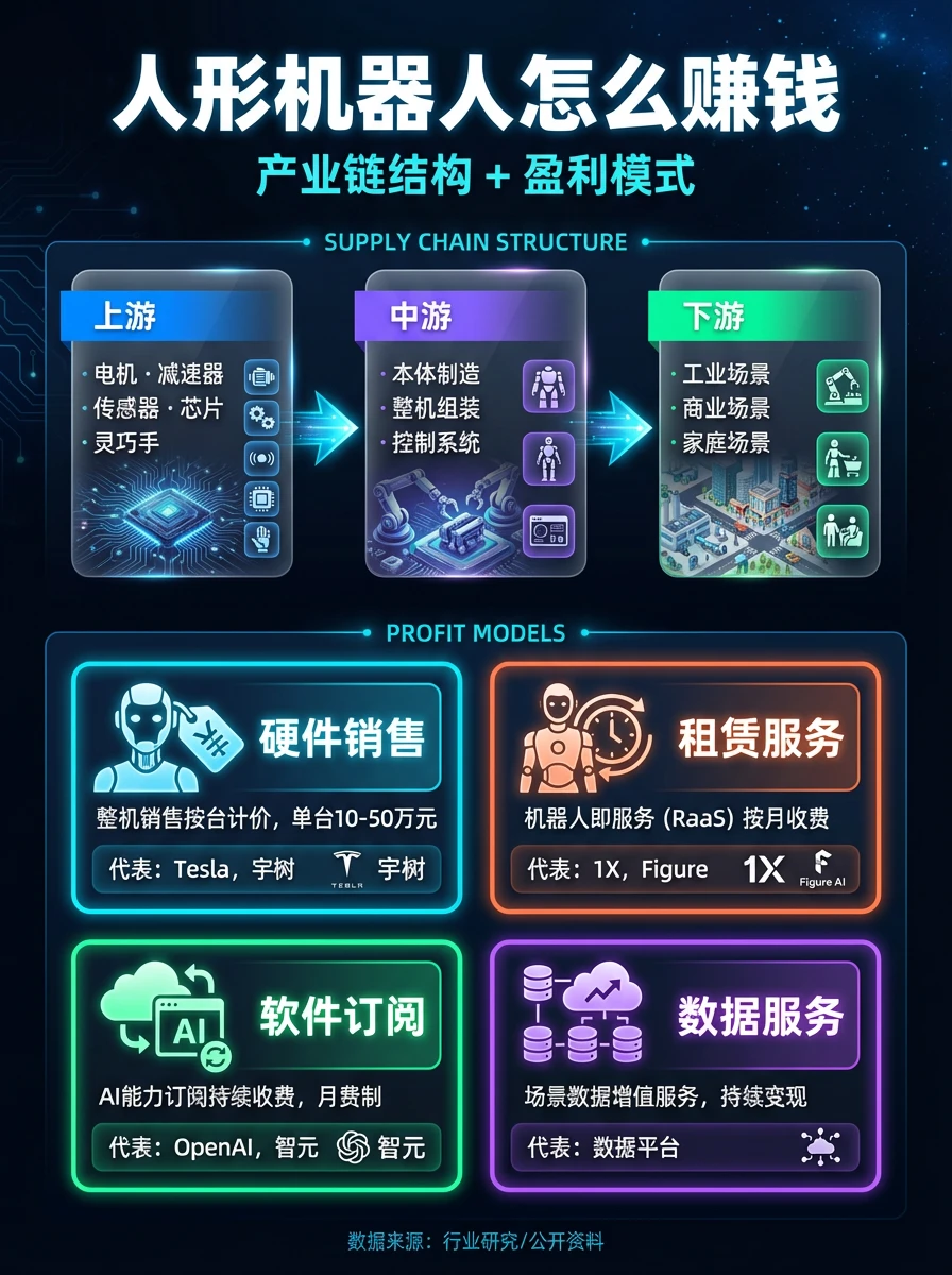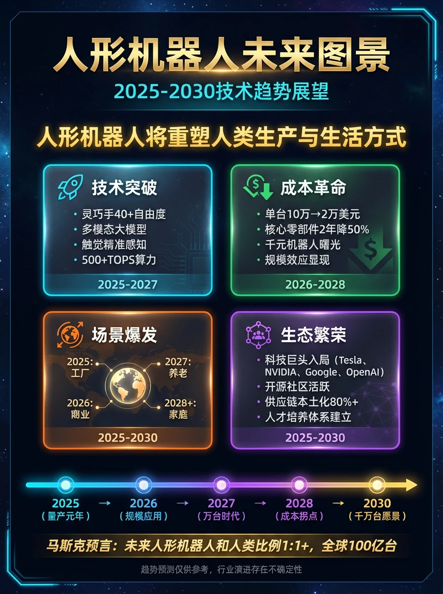 人形机器人是具备人类形态和运动能力的智能机器人,集成了人工智能、高端制造、新材料等先进技术,被视为继计算机、智能手机、新能源汽车后的下一个颠覆性产品。当前大模型爆发、传感器成本下降、特斯拉/Figure/宇树等头部企业纷纷推进量产,正处于规模化应用前夜。