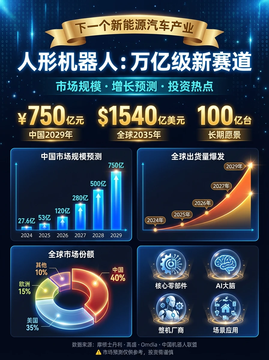 中国市场2029年预计达到750亿元规模,全球市场2035年剑指1540亿美元,长期愿景更是有望达到全球100亿台装机量。