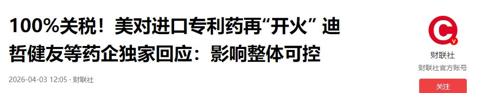 美国那边传来新消息 2026 年 4 月 2 日,美国白宫突然抛出一则搅动全球医药贸易与美国民生市场的重磅消息,总统特朗普亲笔签署官方行政文件,正式宣布对所有进口至美国的专利药以及制药核心原材料加征 100% 的高额关税。 这一决策一经白宫官网公告发布,瞬间在国际医药行业、美国国内民众群体与全球贸易领域炸开了锅。 此次加征关税并非无章可循的临时举措,而是严格依据美国《1962 年贸易扩展法》第 232 条款落地实施,该条款赋予美国总统针对威胁国家安全的进口商品,采取关税限制等贸易调控措施的法定权限。 白宫在官方说明中明确,此次瞄准专利药与制药关键成分祭出高额关税,核心瞄准两大诉求:一是推动医药产业链的核心研发、生产环节回流美国本土,降低美国在药品供应上对海外市场的过度依赖,以此化解所谓的医药供应链国家安全风险; 二是借贸易手段向海外制药企业施压,倒逼企业配合美国的药品价格管控,缓解美国国内长期存在的处方药价格虚高、民众就医购药负担过重的问题。 不同于以往部分一刀切的贸易政策,此次 100% 关税设置了弹性的豁免与税率下调通道,给海外药企留下了协商妥协的空间。 按照白宫公布的具体细则,海外制药企业若能同时达成两项合作要求,便可在 2029 年 1 月 20 日前完全免征这 100% 的关税:其一,与美国卫生与公众服务部签署 “最惠国” 定价协议,承诺在美国市场的药品售价,不高于其在其他发达国家市场执行的最低售价; 其二,与美国商务部签订医药产能回流协议,承诺在美国本土投资建设医药生产设施。若企业仅签署产能回流协议、未参与定价协议,相关进口产品则只需缴纳 20% 的关税,远低于全额 100% 的税率。 美国政府一名高级官员在政策吹风会上坦言,100% 的高额关税,本质是针对既不愿赴美投资建厂、也不肯配合美国药价管控的海外药企,用贸易杠杆倒逼其做出让步。 消息落地后,全球医药行业立刻出现连锁反应。欧洲、亚洲多家头部跨国制药企业的股价,在美股盘前交易阶段就出现明显波动,部分高度依赖对美出口专利药、原料药的企业,股价跌幅尤为显著。 国际医药行业分析机构指出,美国是全球规模最大的医药消费市场,100% 的关税会直接推高海外药企的对美出口成本,企业要么自行压缩利润空间承担损失,要么将成本转嫁给美国消费者,而后者显然会与白宫控药价的初衷形成直接矛盾。 不少医药行业从业者坦言,医药产业链涉及研发、生产、质检、冷链物流等多个复杂环节,想要短期内在美重建完整产能并不现实,高额关税带来的供应链扰动,短期内很难找到有效化解方案。 美国国内的舆论与立场也呈现出明显分化。 支持特朗普政府的声音认为,此举是守护美国本土医药产业、保障药品供应安全的必要手段,长期来看能减少对海外制药成分的依赖,避免突发状况下出现药品短缺的危机,符合 “美国优先” 的核心诉求。 而反对声音则紧紧围绕民生痛点发声,美国多家患者权益保护组织接连发布声明,担忧关税带来的成本上涨最终会由普通患者买单,让本就高昂的处方药价格进一步攀升,加重中低收入群体的医疗负担。 美国国会部分跨党派议员也公开提出质疑,认为用单边贸易手段干预医药市场,只能治标无法治本,既不能从根源上解决美国药价虚高的问题,还可能引发全球医药贸易的摩擦升级。 从全球贸易层面来看,美国此次单边加征高额关税的举动,也引发了众多贸易伙伴国的警惕。 多个美国传统贸易伙伴明确表示,将持续跟踪政策落地后的实际影响,若该关税措施违反国际贸易规则、损害本国企业合法权益,将依规采取相应的反制措施。 世界贸易组织相关负责人也表态,会依据多边贸易规则对美国的这一举措开展评估,维护全球贸易体系的公平与稳定。 特朗普政府推出这项医药关税政策,本质是其 “美国优先” 贸易理念在医药核心领域的延伸落地。 近年来,特朗普团队始终试图通过关税、贸易协定重构等方式,推动能源、科技、医药等关键产业链回流美国,而医药产业关乎民众健康与国家战略安全,自然成为政策发力的重点。 但从实际执行逻辑来看,100% 的高额关税只是威慑手段,依托豁免条款保留的谈判空间才是核心,白宫的真实目的并非彻底切断海外医药进口,而是逼迫海外药企在药价定价与本土投资上向美国妥协。 截至 2026 年 4 月 3 日,已有多家跨国药企表态,将尽快与美国政府展开专项沟通,争取达成兼顾双方利益的合作协议,避免 100% 关税带来的巨额成本冲击。 对于全球医药市场而言,这一政策短期内会加剧供应链的不确定性,跨国药企不得不重新调整对美贸易与生产布局;对于美国国内来说,政策能否同时实现控药价、促产业回流的双重目标,依旧充满变数。