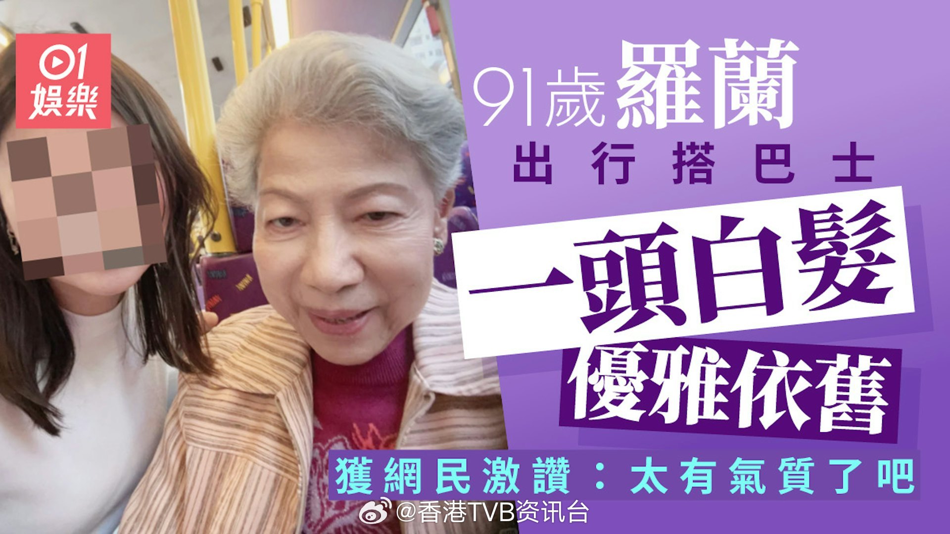 现年91岁的金像奖影后罗兰,1993年在电影《七月十四》中首次饰演“龙婆”,从此奠定了这一经典形象。罗兰近年也有参演TVB剧集《金式森林》,饰演郭晋安的妈妈,当时还带着脚伤宣传。去年罗兰证实已离巢,受访时表示TVB没有和她谈续约,因此约满后便离开。近日罗兰搭巴士出行,一头优雅白发获赞气质依旧。