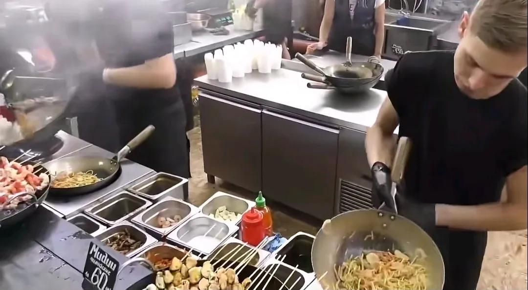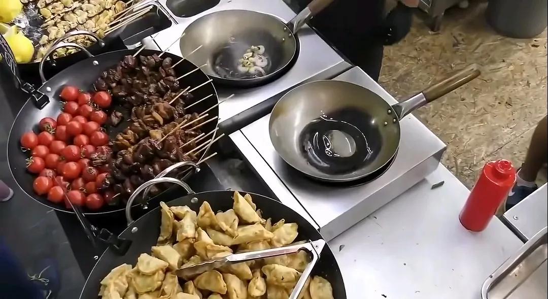 “颠勺”技术泄露了[捂脸] 老外也开始摆摊了 炒面,烧烤... 这是把我们