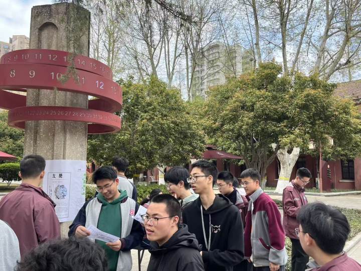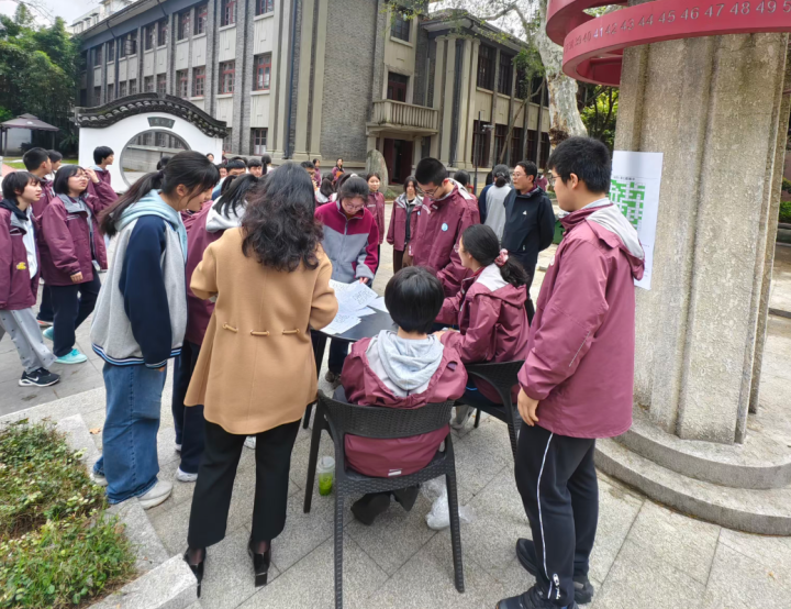 昨天中午,杭州高级中学的校园里非常热闹,有个地方被围得里三层外三层。这里正在进行校园诗词填字游戏,欢迎全校学生来挑战。