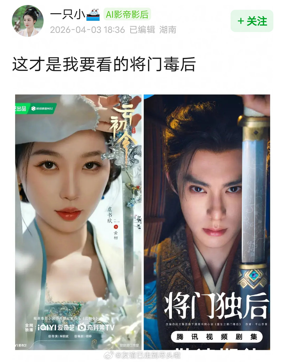 虞书欣王鹤棣同款拔剑海报,棣欣引力又磕到了云初令全阵容发布虞书欣云初令海报