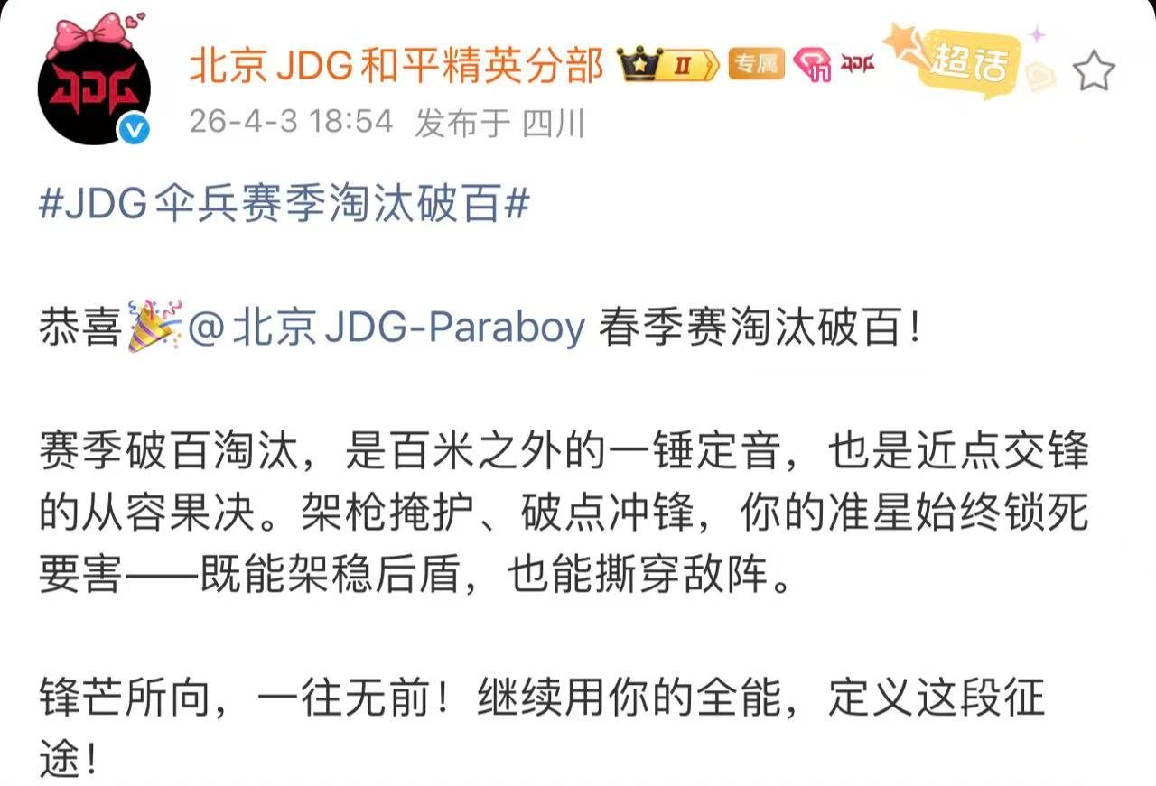 JDG伞兵赛季淘汰破百从赛季初到现在,稳定发挥、持续贡献,百淘汰是对状态与付出的
