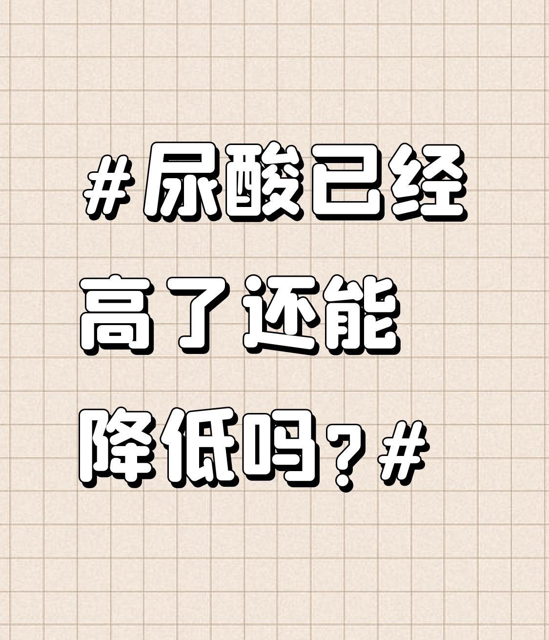 尿酸已经高了还能降低吗? 尿酸高了是能降低的。我身边就有尿酸高的朋友成功降下来了。 一方面可以从生活方式干预。要限制高嘌呤食物,像动物内脏、海鲜这些就别吃了,多吃新鲜蔬果,饮食清淡。每天保证1500 - 2000毫升的饮水量,促进尿酸排出。还要控制体重,适度运动,但别剧烈运动,不然尿酸可能短期升高。另外,戒酒限糖也很重要,啤酒和含果糖饮料都得远离。 另一方面,如果生活方式调整效果不好,可以药物治疗。像别嘌醇、非布司他等,但得听医生的,不能自己乱用药。定期复查尿酸和肾功能,让医生调整方案。只要科学管理,尿酸降到正常不是梦。