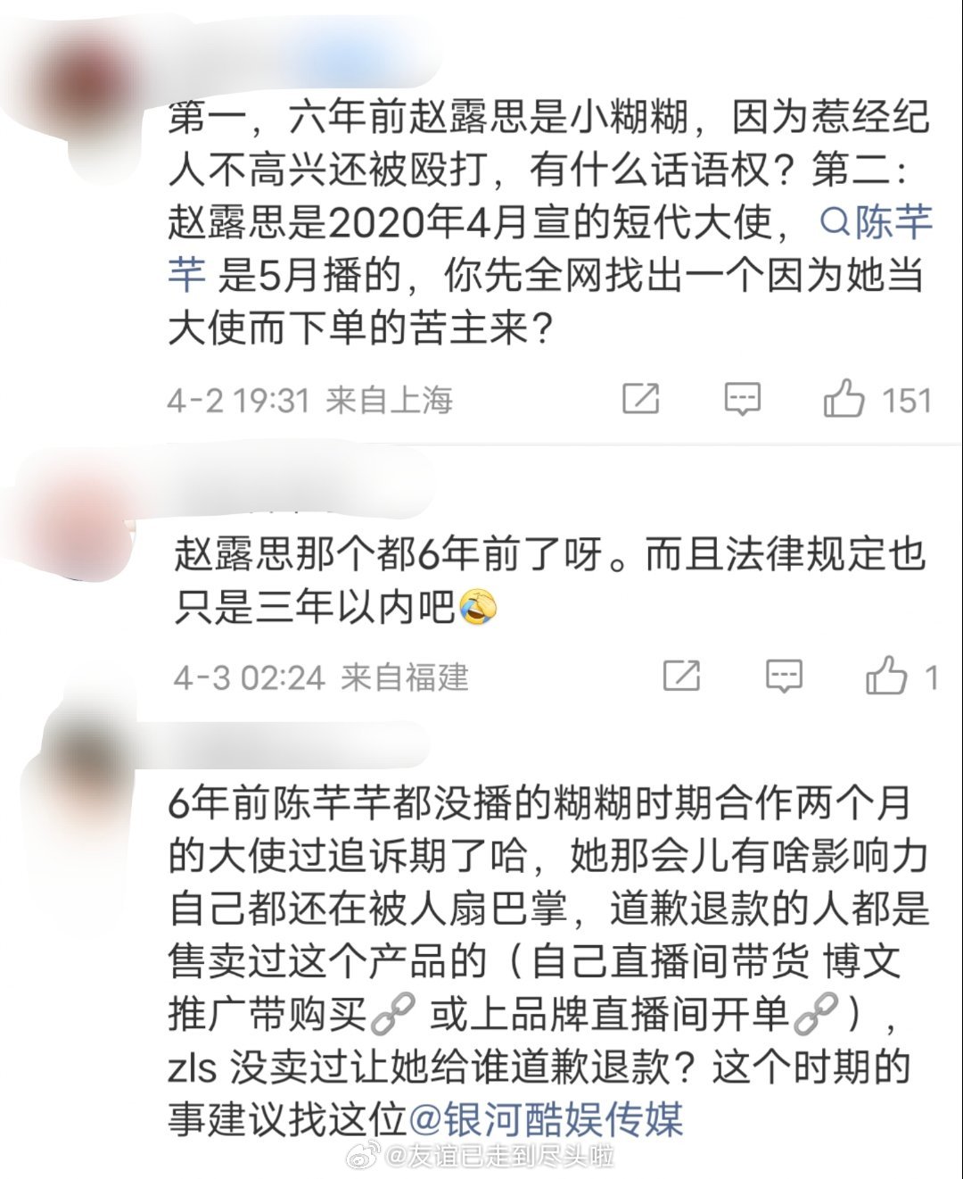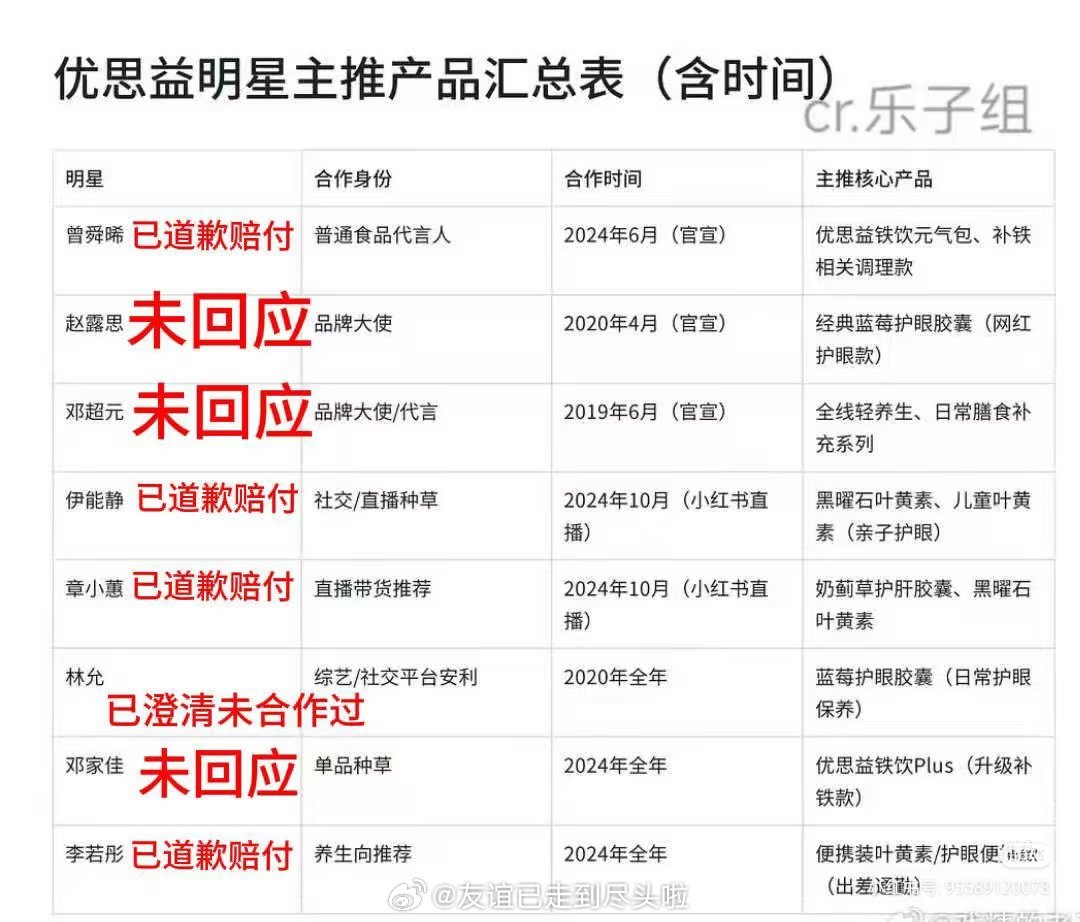 关于赵露思优思益的澄清☞6年前的品牌大使,只合作了2个月的短代,已经过了最长追溯期☞赵露思无直播间带货,无购买专链☞代言时间在陈芊芊播出前,糊花没有号召力,不会有人因为她代言而去购买这个产品优思益称无力售后 优思益优思益发布海外工厂情况声明