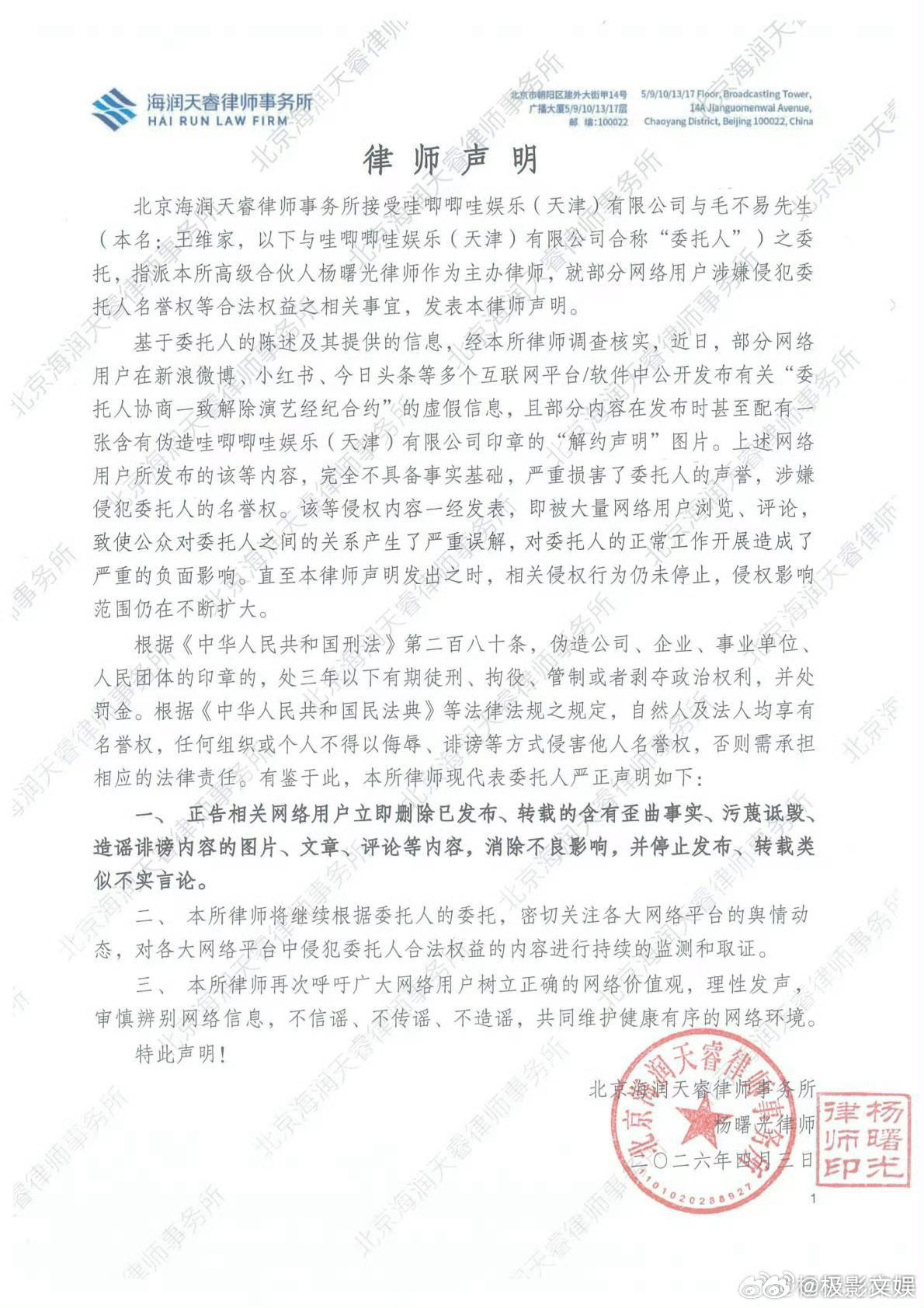 哇唧唧哇否认毛不易解约不传谣不信谣