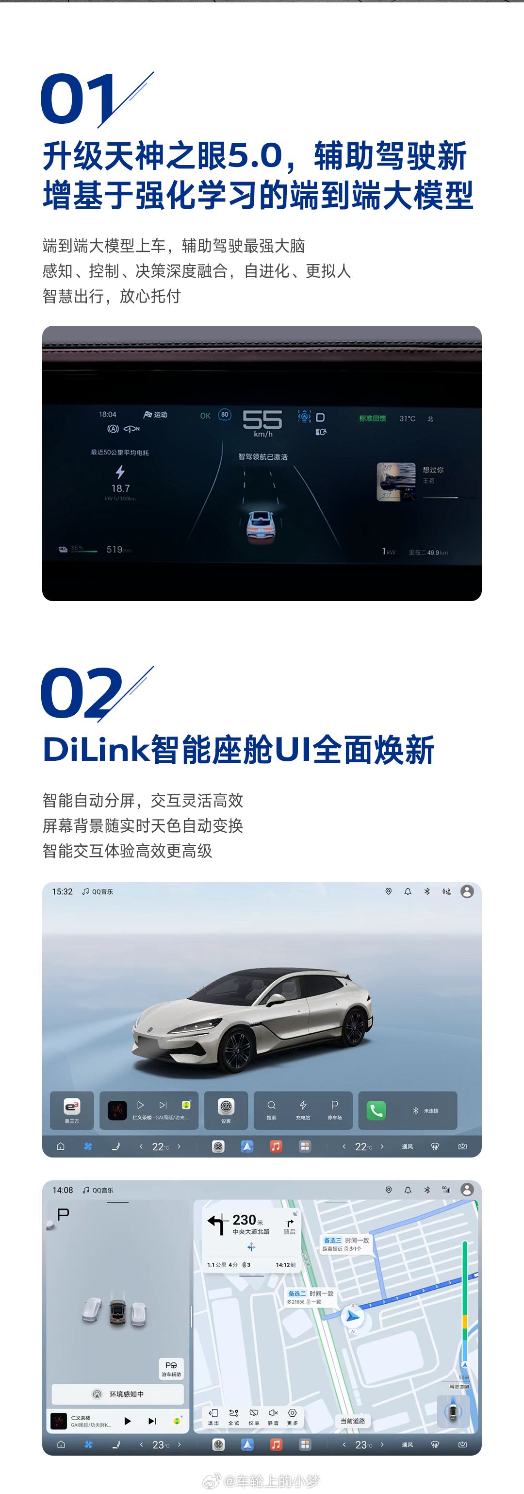 智驾这边升级到天神之眼5.0,引入了端到端大模型,开起来更像老司机。窄路通行、多把掉头都安排上了,甚至连前车起步都会主动提醒,细节拉满。泊车也变得更聪明,支持自选车位、泊入失败自动下电,还多了五视角记录,安全感在线。