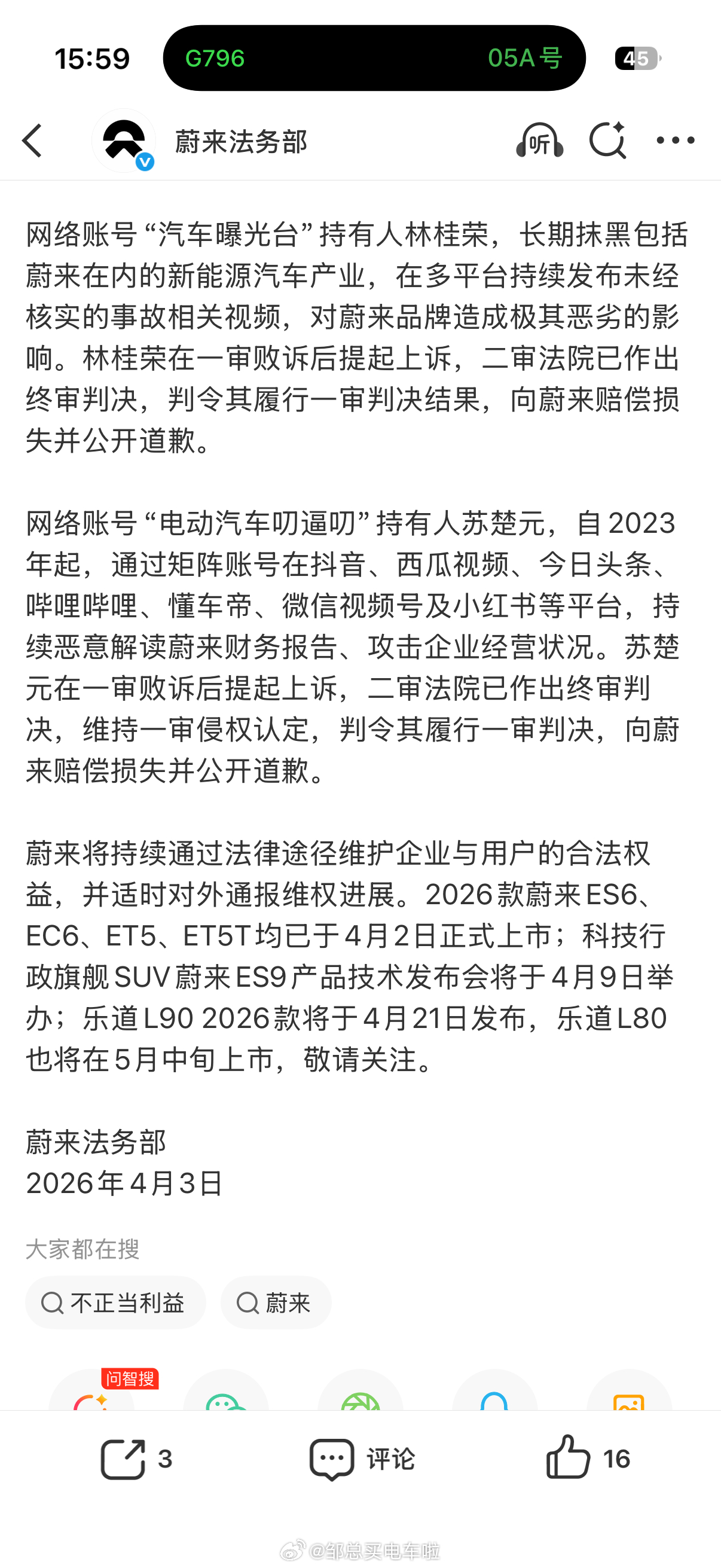 一手抓法律维权,一手抓产品势能,双管齐下邹总买电车啦蔚来大v聊车