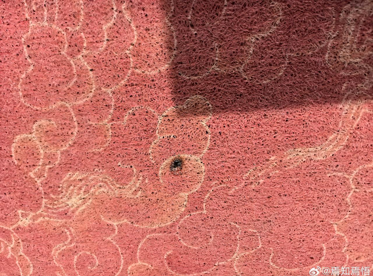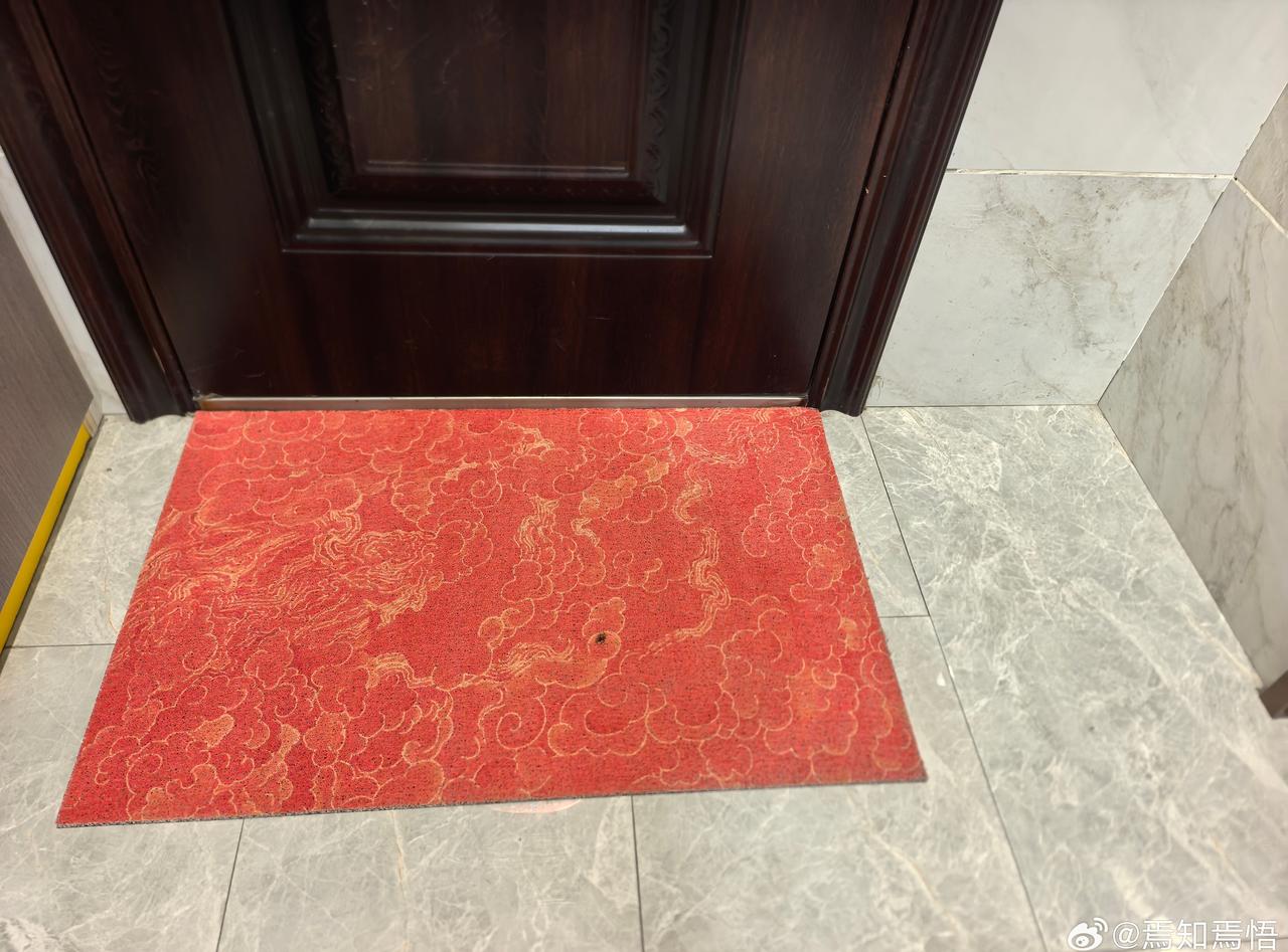 早晨出门发现门口的地垫上有一处黑疤我以为是污渍,近看是烟头烫过的新疤。 ​中午1