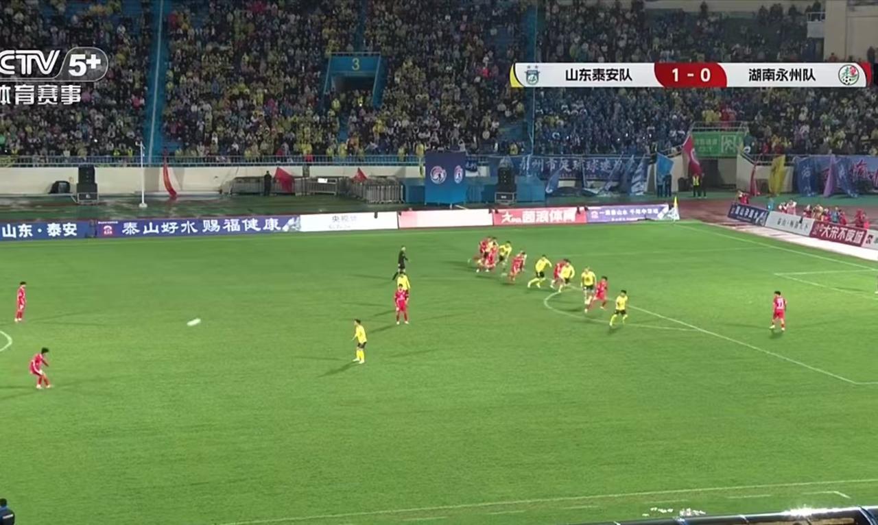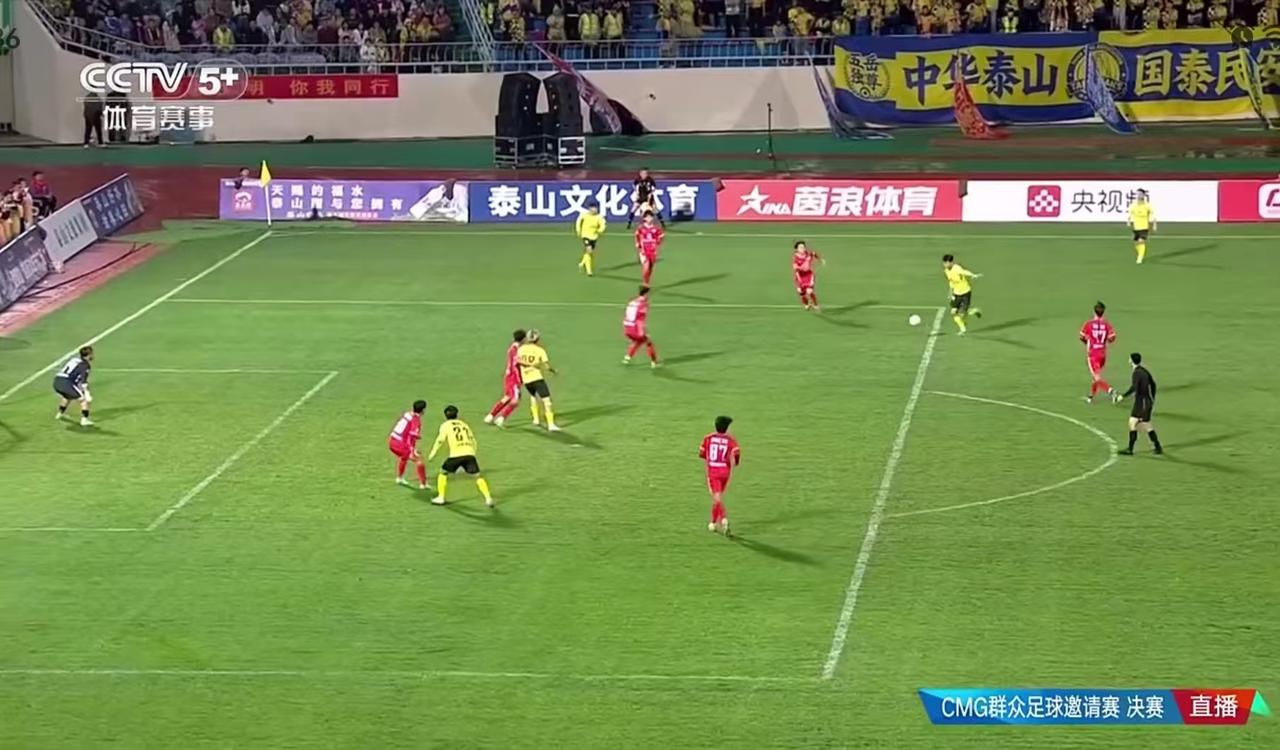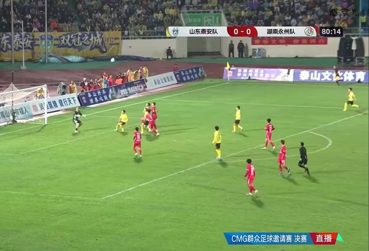 CMG群众足球邀请赛:山东泰安队1-0战胜湖南永州队夺冠 北京时间4月3日19:30分,CMG群众足球锦标赛决赛拉开了序幕。山东泰安队主场迎战湖南永州队。上半场双方战成0-0平。下半场第81分钟,山东泰安队的袁浩一脚世界波破门,山东泰安队的1-0领先,此后双方均无进球。最终,山东泰安队获得冠军,湖南永州队获得亚军。 主裁判一声哨响,上半场比赛开始了,场上穿着红色球衣的是湖南永州队,穿着黄色球衣的是山东泰安队。山东泰安队从左往右攻。上半场,山东泰安队不断向湖南永州队的球门施压,多次获得角球和前场任意球。但是湖南永州队防守非常到位。一次次化险为夷,确保球门不失。湖南永州队也给山东泰安队的球门造成了威胁。但是都无法取得进球。双方0-0握手言和。 下半场易边再战。山东泰安加强进攻。湖南永州队也多次打出有威胁的反击。双方打的难解难分。比赛的第73分钟,湖南永州队的球员防守动作过大,吃到第二张黄牌,两黄变一红把红牌罚下。湖南永州队少一人作战。场上风云突变。山东泰安开始围攻湖南永州队的球门。第81分钟,山东泰安队把球传到禁区,24号球员袁浩世界波破门。山东泰安队1-0领先。此后,湖南永州队在做好防守的情况下,也向山东泰安队的球门发起进攻。但是,双方都没有取得进球。最终山东泰安队1-0战胜湖南永州队夺冠,湖南永州队获得亚军。永州足球队 永州队球赛 永州球赛