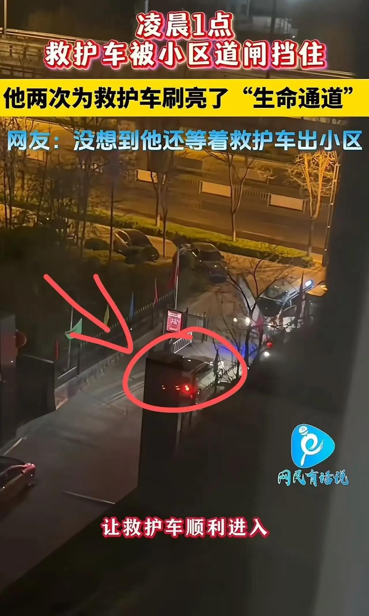 山西太原凌晨1点,一辆救护车被小区道闸无情拦住,情况万分危急!这时,一位神秘大哥挺身而出,两次刷卡为救护车打开了“生命通道”,他究竟是谁? 据了解,当时救护车正紧急赶往现场,却因小区道闸故障无法进入。就在这千钧一发之际,小区里的一位大哥出现了。他迅速跑到道闸前,第一次刷卡尝试打开道闸,但未能成功。大哥没有放弃,而是再次返回,第二次刷卡,终于为救护车打开了通往生命的道路。这两次刷卡,不仅展现了大哥的机智与勇敢,更彰显了他对生命的尊重与敬畏。网友们纷纷点赞,表示这位大哥可能间接救了一个家庭,功德无量!在深夜的寒风里,他用实际行动诠释了什么是真正的善良与担当。那些总抱怨“社会冷漠”的人,不妨问问自己,在遇到类似情况时,是选择骂物业,还是像这位大哥一样,勇敢地站出来,为生命让行? 这位大哥的善举,让我们看到了人性的光辉与温暖。他的行为,不仅为救护车争取了宝贵的时间,更为我们树立了一个榜样。快来评论区分享你的看法,让我们一起为这位大哥点赞,传递正能量!路边救护车 小区来了救护车 路上的救护车