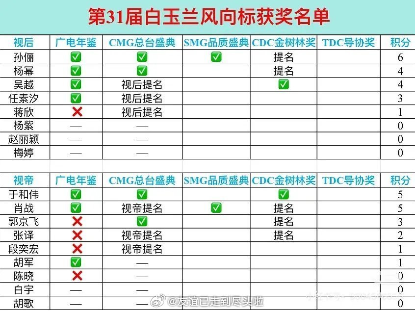 网友爆料这届白玉兰卡二封三封,拿过奖的较以往角色没有突破的不给奖。于和伟、张译、