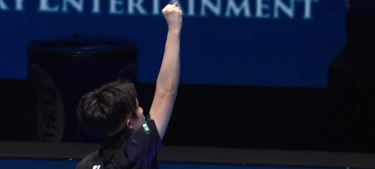 王楚钦4:8追至8:9, 他今天成为追分的神, 首局关键分两分之差, 他负于小勒布伦, 第二局2:7落后, 几个强势的相持球, 慢慢的提升状态, 今天的王楚钦处于下风, 靠着一分一分的追, 实现逆转。 原以为第三局局势会好一点, 但是小勒布伦抢了几个半出台, 又将比分差距拉大为4:8, 王楚钦再次将比分追平, 两个关键分太可惜, 小勒布伦再得一局。 第四局的王楚钦终于举起了自己的拳头, 多板相持球的得分, 打出了气势, 国乒全体起立为他鼓掌, 他以11:5胜出, 第五局明显看出小勒布伦的下风, 王楚钦再以11:6拿下。 第六局太关键了, 王楚钦一直保持领先, 可惜局末段被小勒布伦追平, 出现爆分, 在你来我往的拉锯战中, 王楚钦以15:13胜出。 恭喜! 这一战太不容易, 这场球的强度不比决赛差, 王楚钦仰头深呼一口气, 王皓指导高举双手, 激动万分。