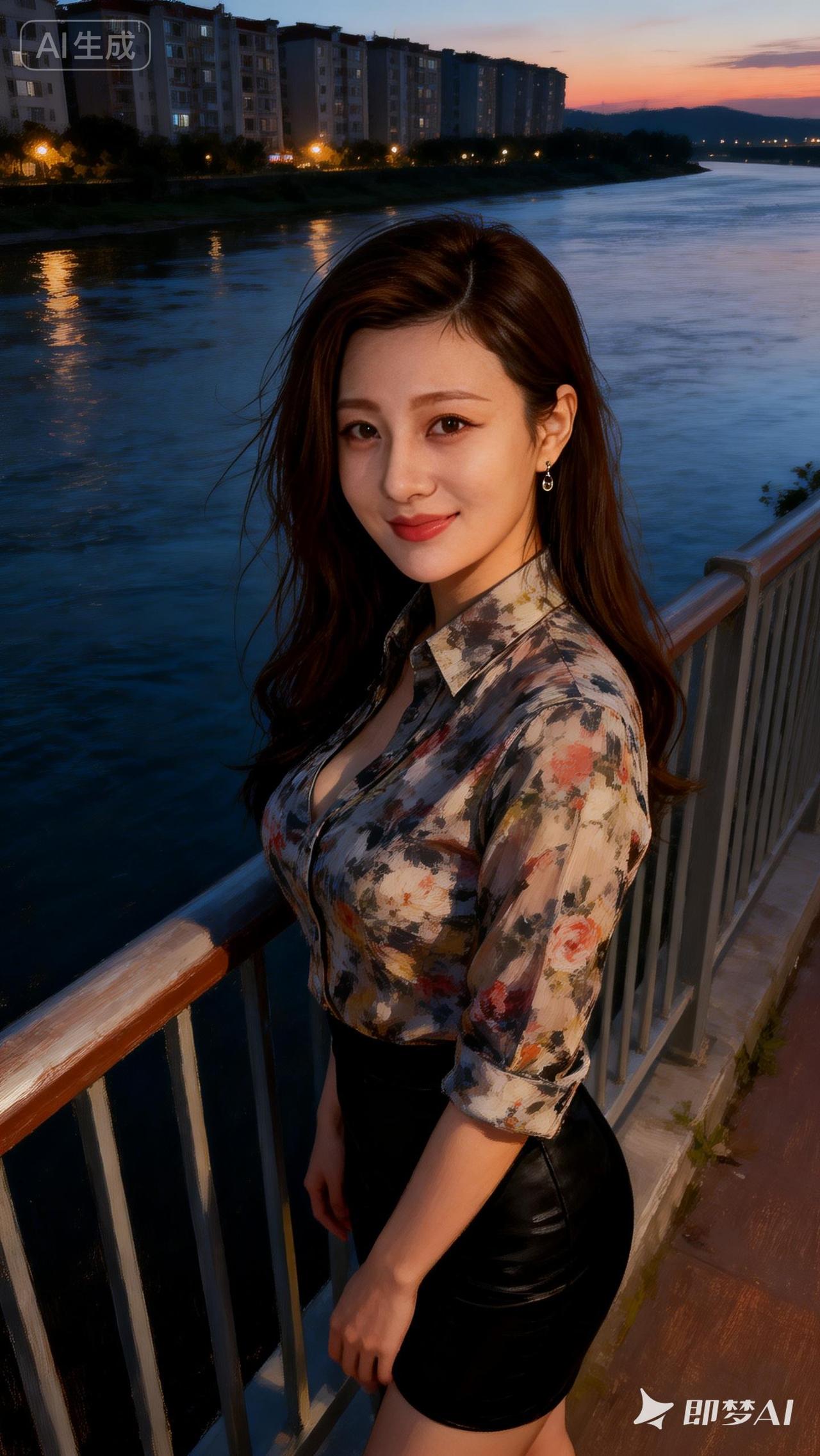 黄昏河畔,优雅少女,时尚穿搭,尽显魅力