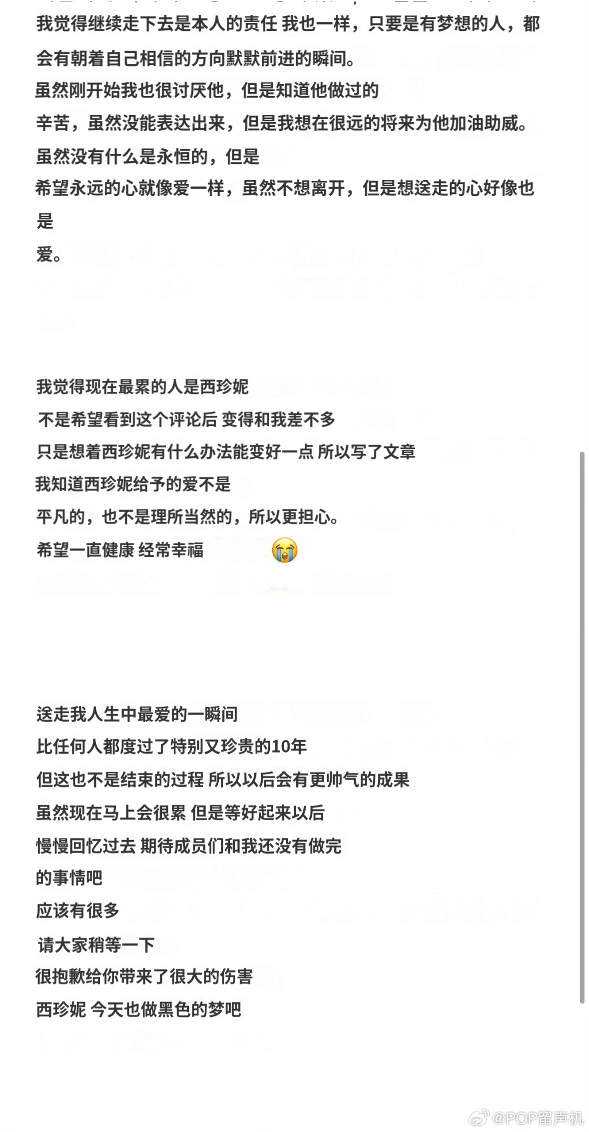 朴志晟泡泡发布超千字长文 朴志晟泡泡发长文