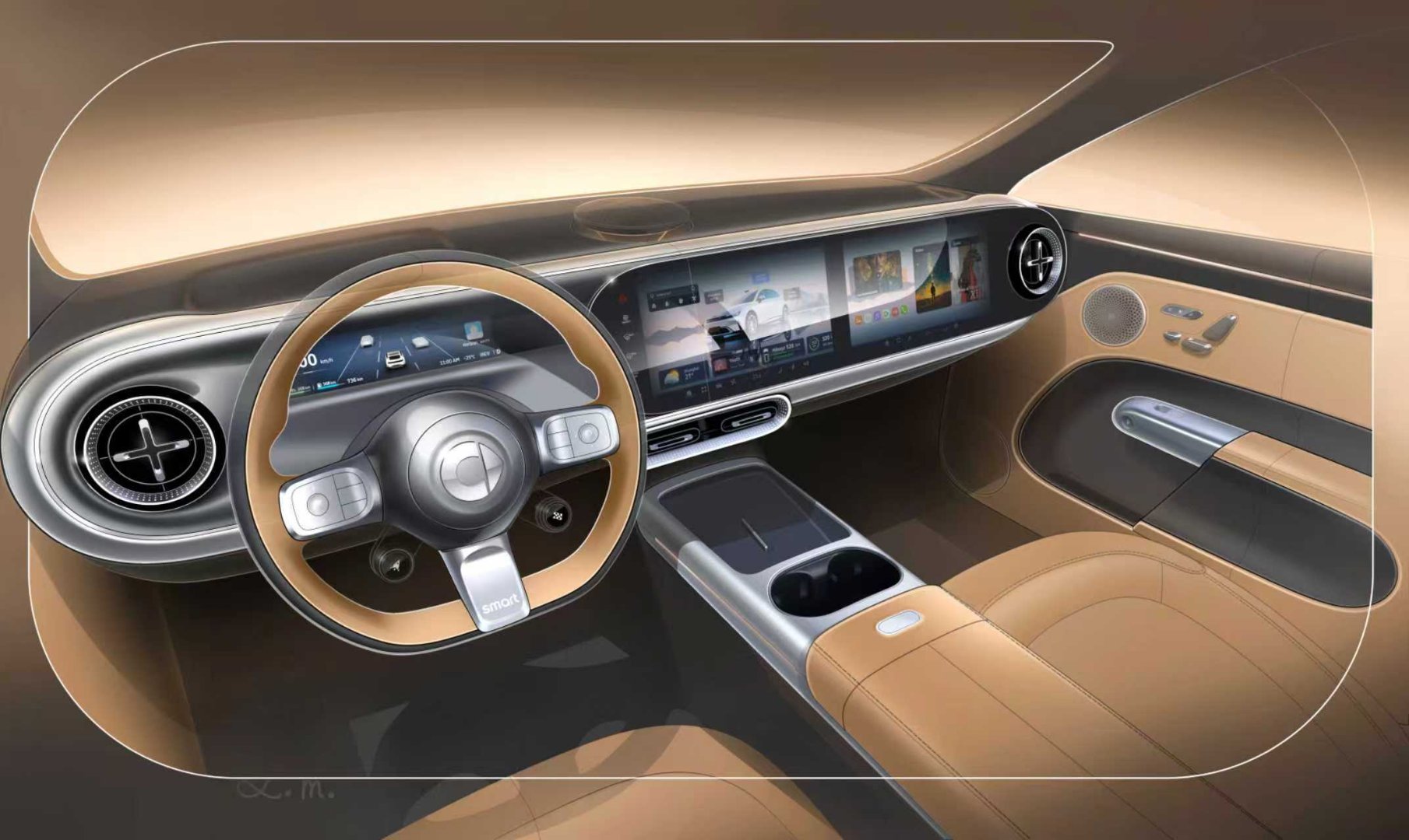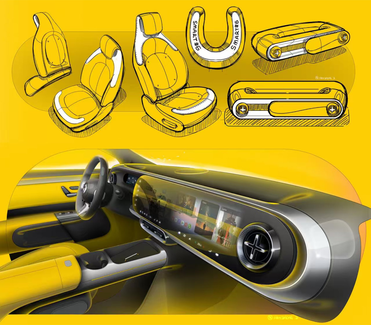 仔细看,原来奔驰新的设计语言,的确是和smart有很多共同点,很多奔驰上经典的元素都能在smart 6 上找到,比如千鸟格,涡轮出风口,升降扬声器