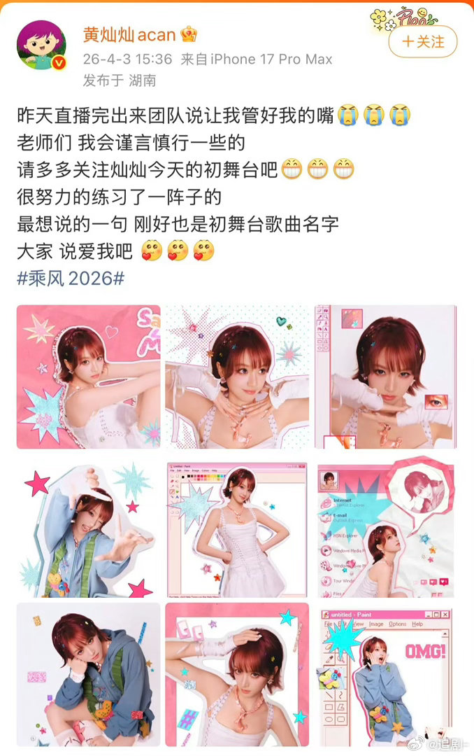黄灿灿团队让我管好我的嘴 别人乘风破浪靠实力,黄灿灿乘风破浪靠嘴。团队:求你了,舞台上看你的,采访闭嘴就行。