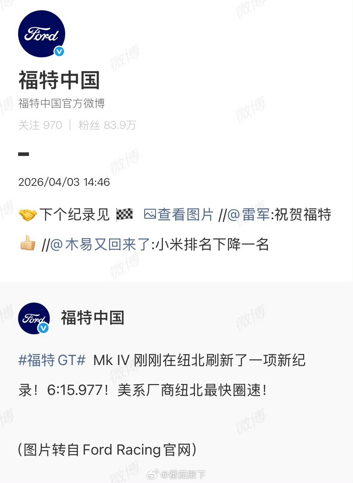 福特回应雷军祝福小米汽车的营销明显高级多了,不是成天拉踩别人,而是携手同行良性竞争。