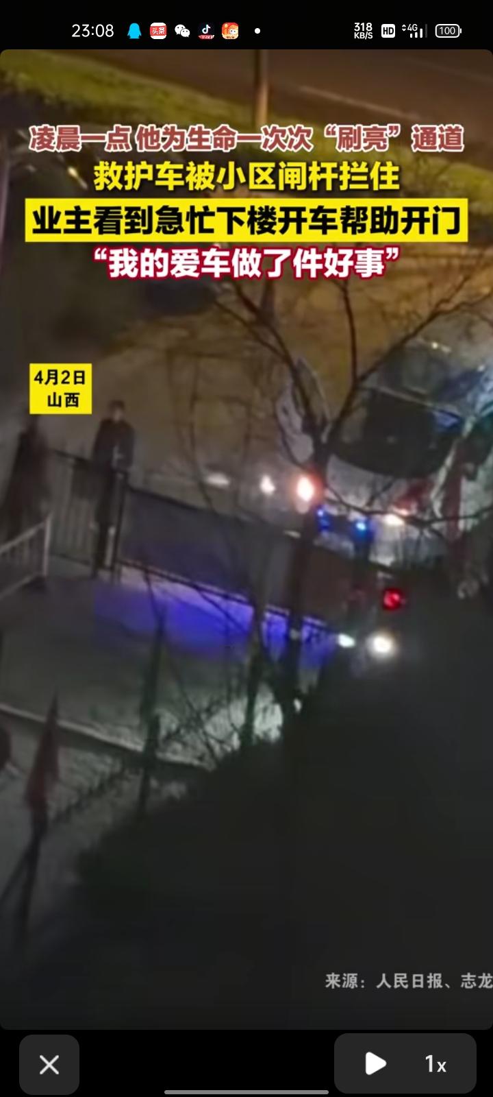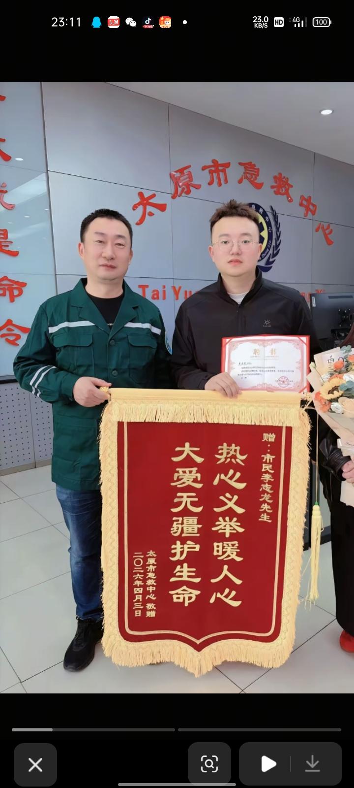 4月2日,山西太原。凌晨一点,救护车卡在小区门口,00后小伙听到救护车的鸣笛声,果断下楼开车反向帮忙“抬杆”,为救护车让出生命通道。 当事人李先生表示,与救护车擦身而过时,医护人员向他挥手致谢。自己是东北人,本就热心肠。 目前,当地急救中心赠予李先生一张锦旗表示感谢