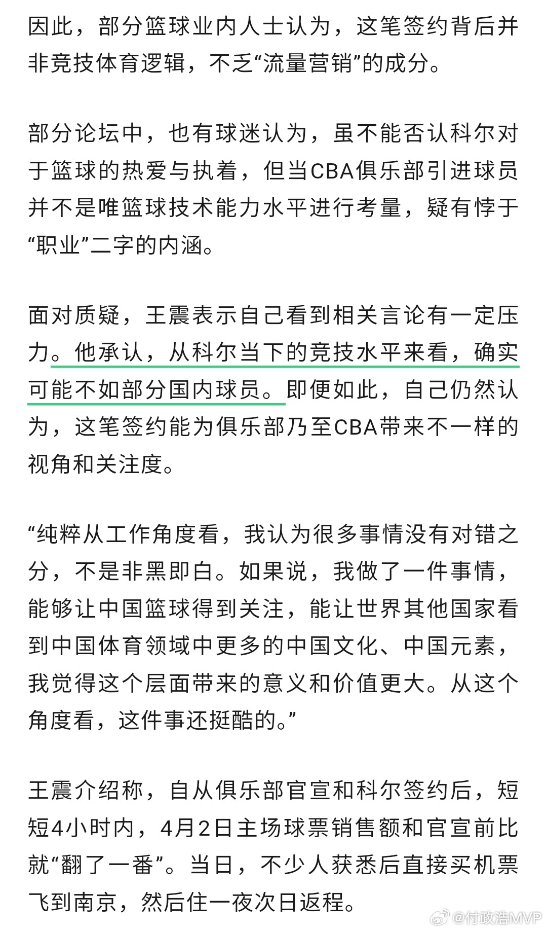 4、JCole票房号召力喜人。王震介绍称,自从俱乐部官宣和科尔签约后,短短4小时内,4月2日主场球票销售额和官宣前比就翻了一番。当日,不少人获悉后直接买机票飞到南京,然后住一夜次日返程。4日南京同曦的主场球票销售,和2日比赛的销售总额相比更是翻了一番。