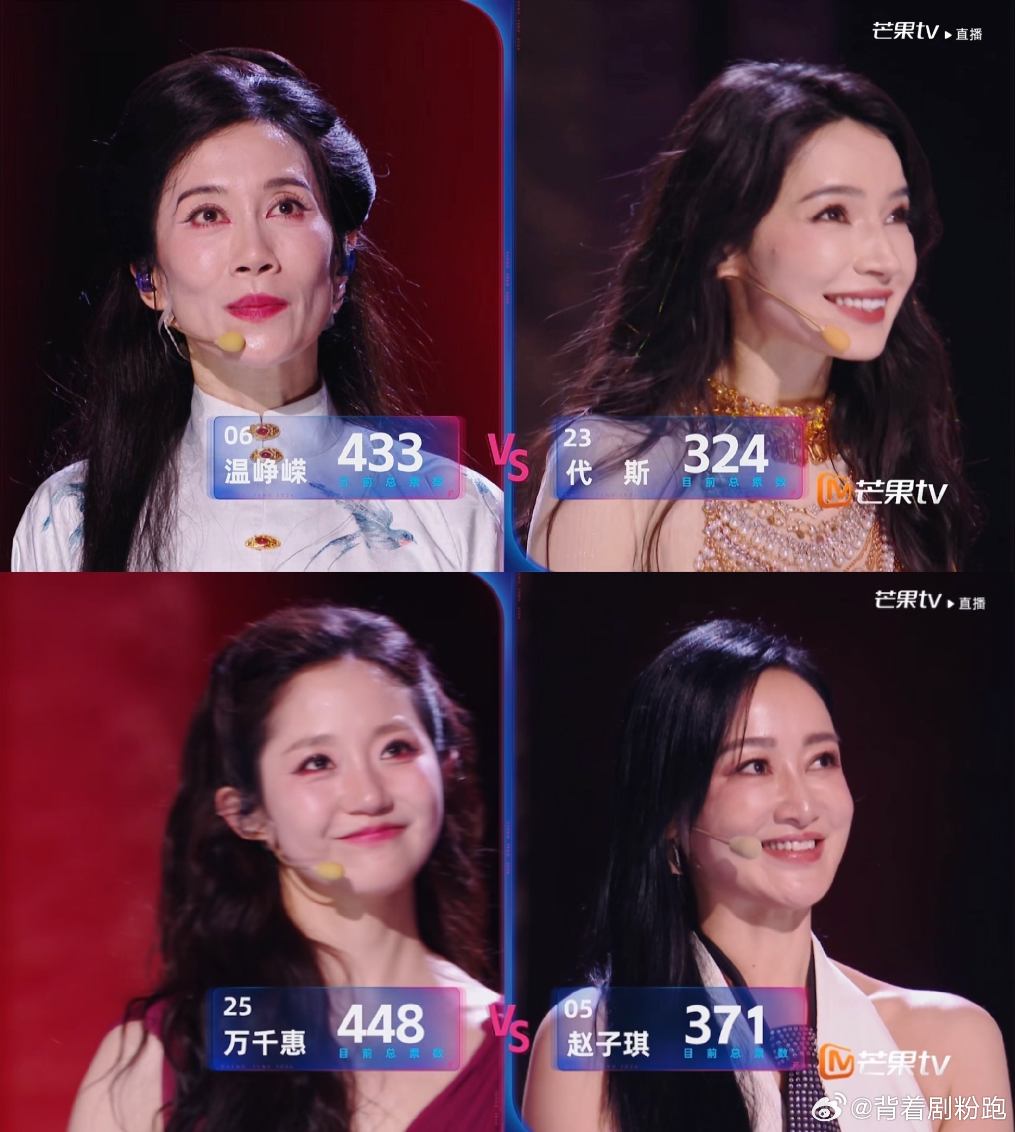 浪姐排名今天八组姐姐pk结果来了,初舞台第一天阚清子最高分480分,代斯最低分3
