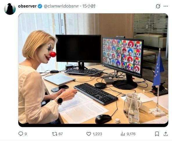 另外,各国网友的眼睛也是雪亮的。会议结束后,欧盟外长卡娅·卡拉斯在社交媒体上发布了一张她的参会照片,试图做宣传,结果立刻被外国网友P成了小丑形象——这场被修改的照片,几乎是对这场会议最直白的嘲讽。