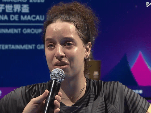 2026年澳门乒乓球世界杯汉娜高达逆转战胜袁嘉楠晋级八强后,赛后采访时和教练都留下了激动的泪水