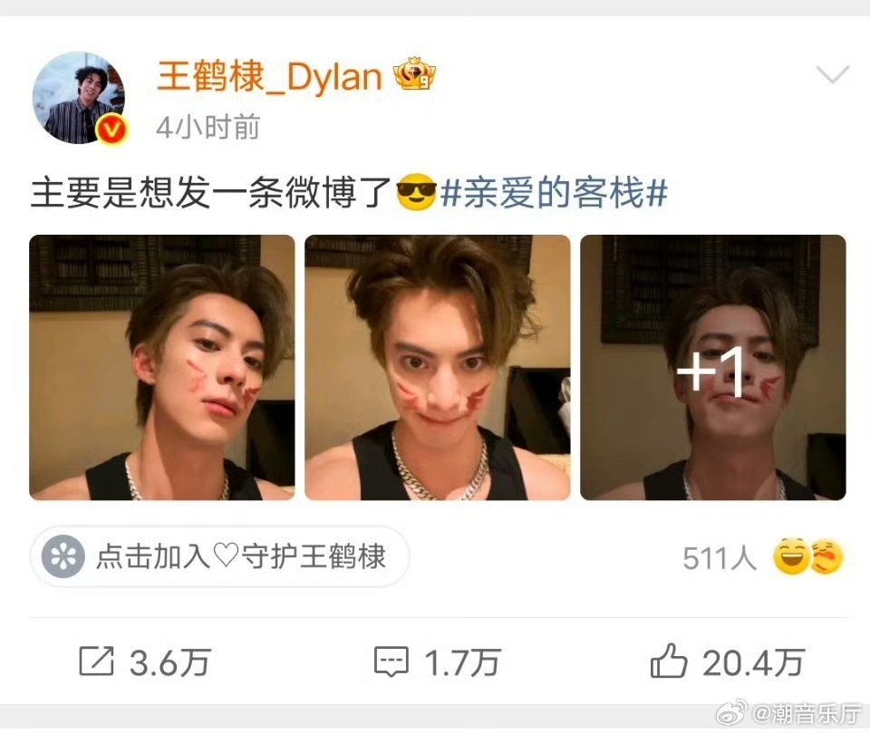 王鹤棣嘴硬 王鹤棣输了游戏乖乖发博,还要嘴硬撑场面,可爱到犯规。亲爱的客栈