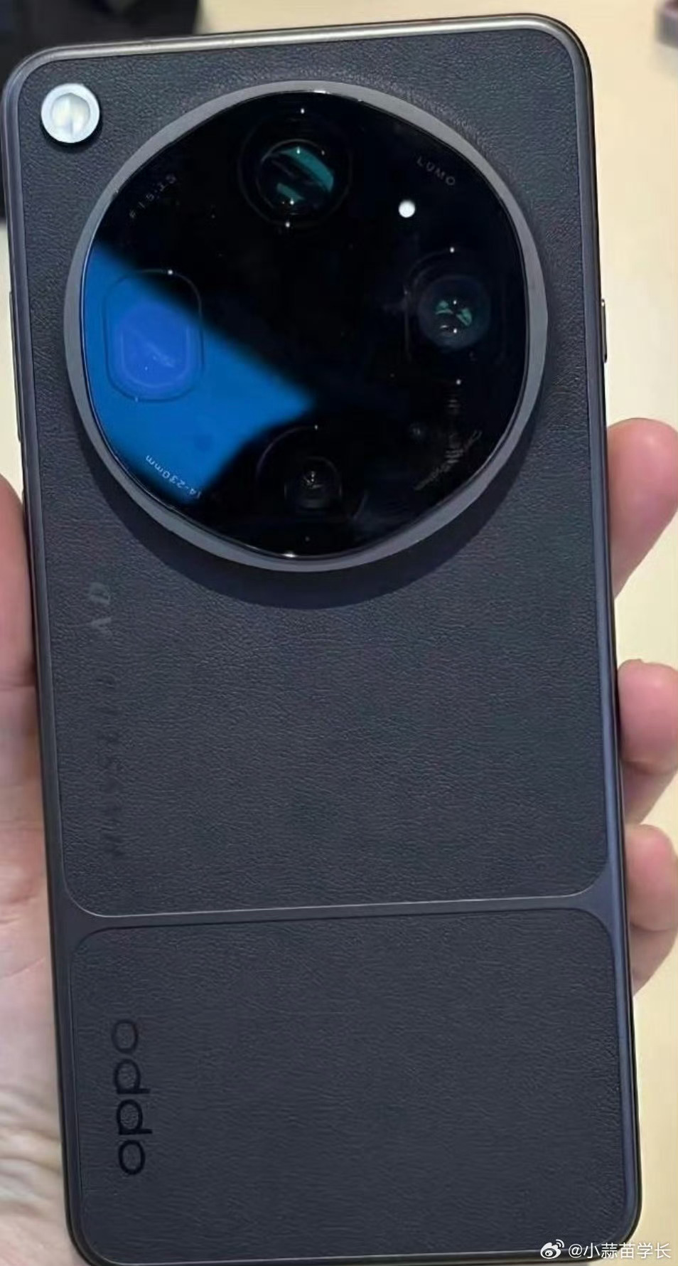 这是网传的 OPPO Find X9 Ultra 的真机,这个镜头模组我觉得好看不少,两层设计,上面是 6 边形,下面是圆形。镜头中间也没有哈苏的 H LOGO 了,把哈苏的标放在了手机后盖的侧面。你们觉得这样的 OPPO Find X9 Ultra 好看吗?