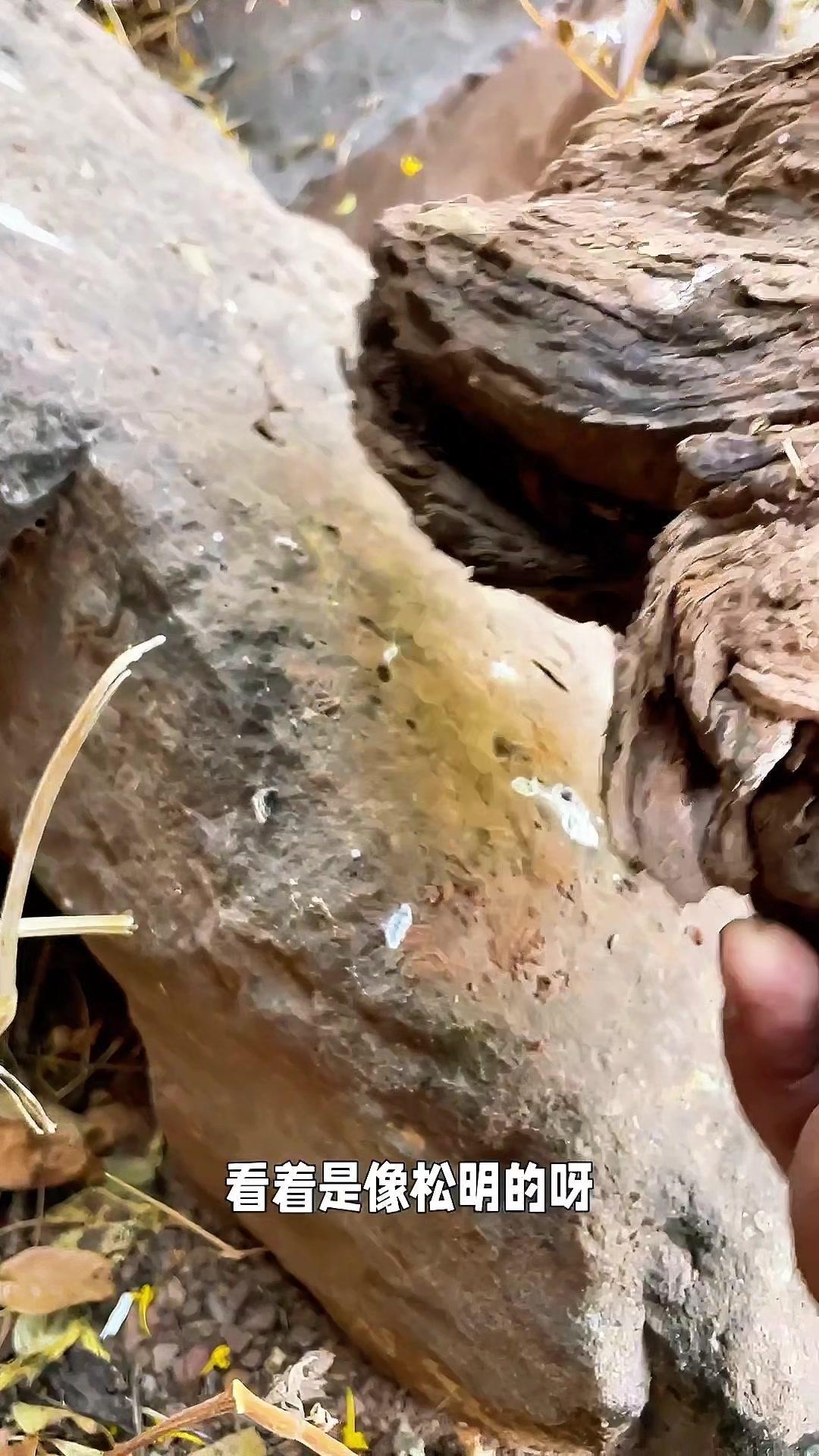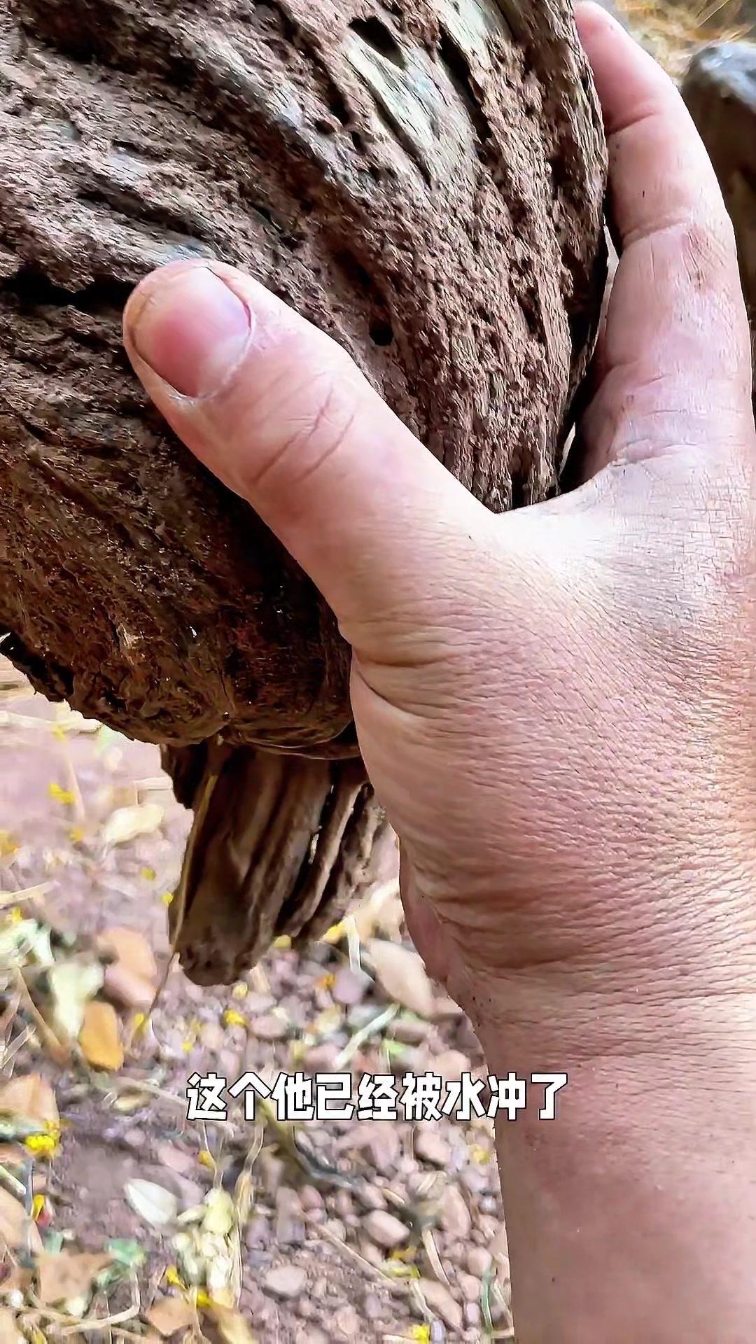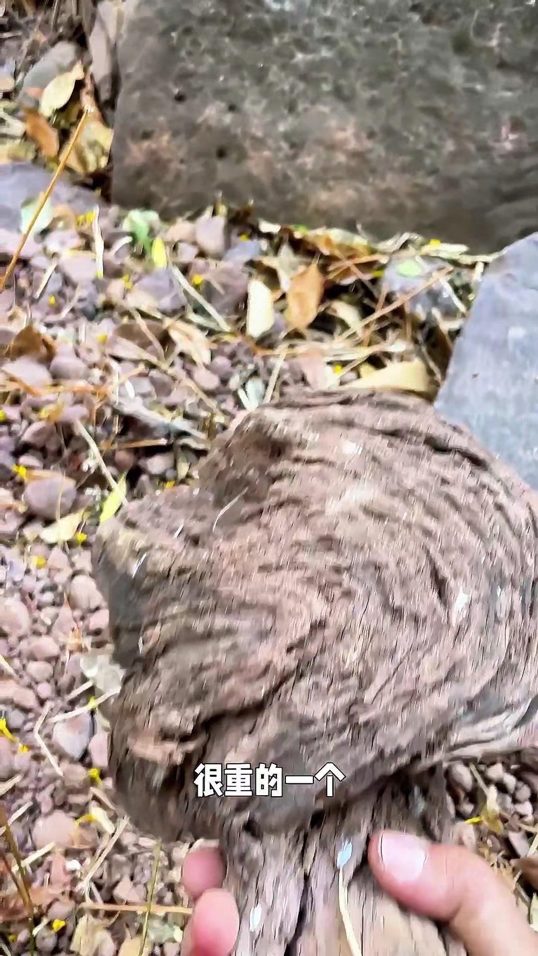 🌿在箐沟里意外发现树瘤包,被水流冲刷后形状奇特,像极了松明。这种天然形成的树瘤,拿回去打磨后做摆件应该会很特别。虽然部分已被水冲得有些腐坏,但整体依然很有质感,沉甸甸的很有分量。