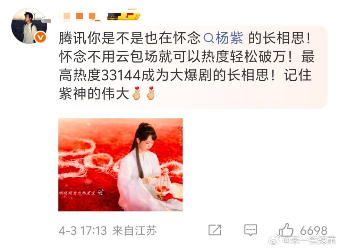 迪丽热巴《白日提灯》的云包场评论区,杨紫粉丝问鹅是不是在想念杨紫的《长相思》
