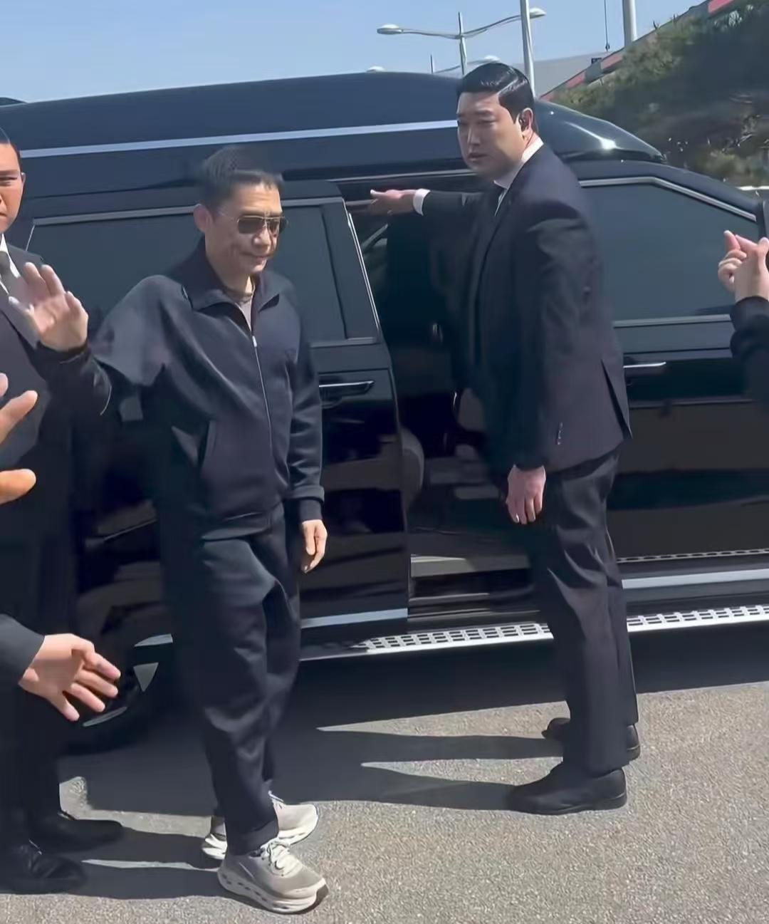 64岁梁朝伟现身韩国,他穿着一双增高鞋,但真人看起来还是很矮。他一到机场,就有豪车接送,排场真大啊! 4月2日,梁朝伟时隔18年再赴韩宣传新片《寂静的朋友》。仁川机场一出场,五六名保镖贴身护卫,迈巴赫专车候着,排面拉满。 但全网目光却盯上了他的裤子和鞋——厚底增高鞋约3.5厘米,阔腿裤边走边掉档,垫脚上车时白袜子都露了出来。白发、皱纹、清瘦身形,毫无遮掩。 网友嘴下不留情:“穿增高鞋还显矮”“和刘德华同岁,状态差太多”。也有人替他说话:“64岁真实状态就这样,不装年轻反而更体面。” 影帝没回应争议,只是来宣传一部艺术片。掉档裤没掉体面,这就够了。