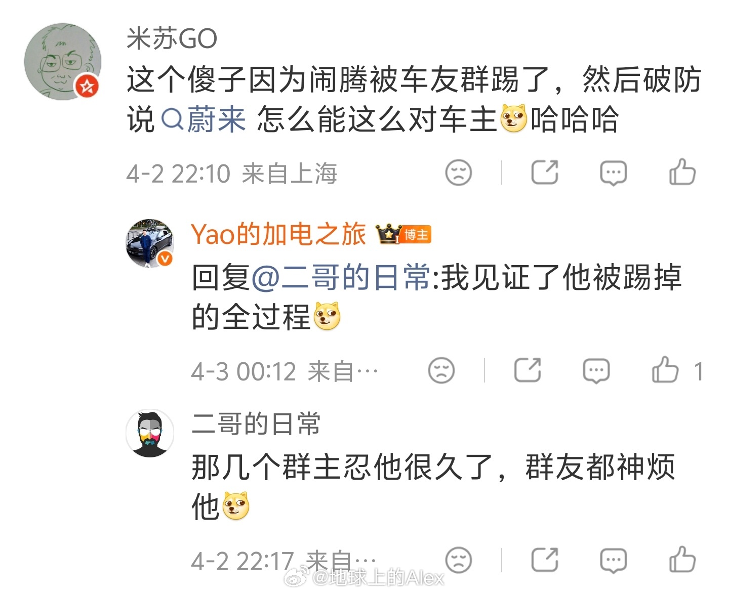 我不知道踢我的原因是什么但是说我“闹腾”、说“被踢的全过程”、说“神烦我”,我没有找到任何的根据和理由这位博主明知造谣依旧应声附和