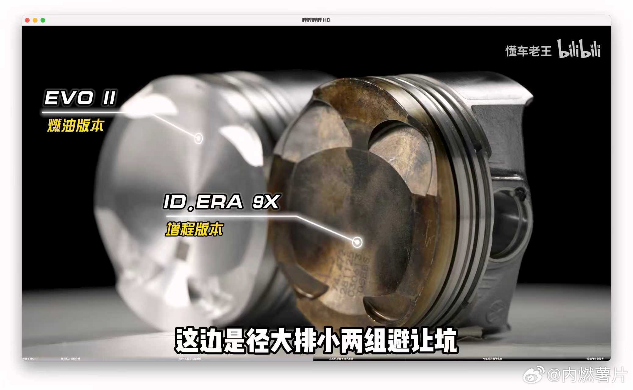 意料之外情理之中,ERV 的燃烧系统针对增程工况做了升级。活塞重新设计,凹坑形状变为更利于滚流的碗形,我推测还搭配了高滚流进气道和燃烧室。虽然这种设计限制了进气流量使得功率下降,但增程器看重的高热效率和热机速度都是显著提升。