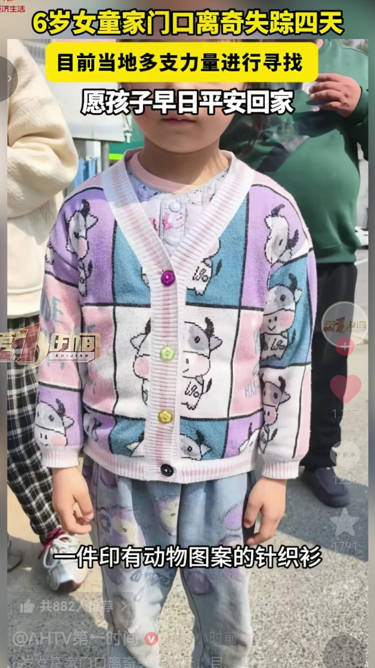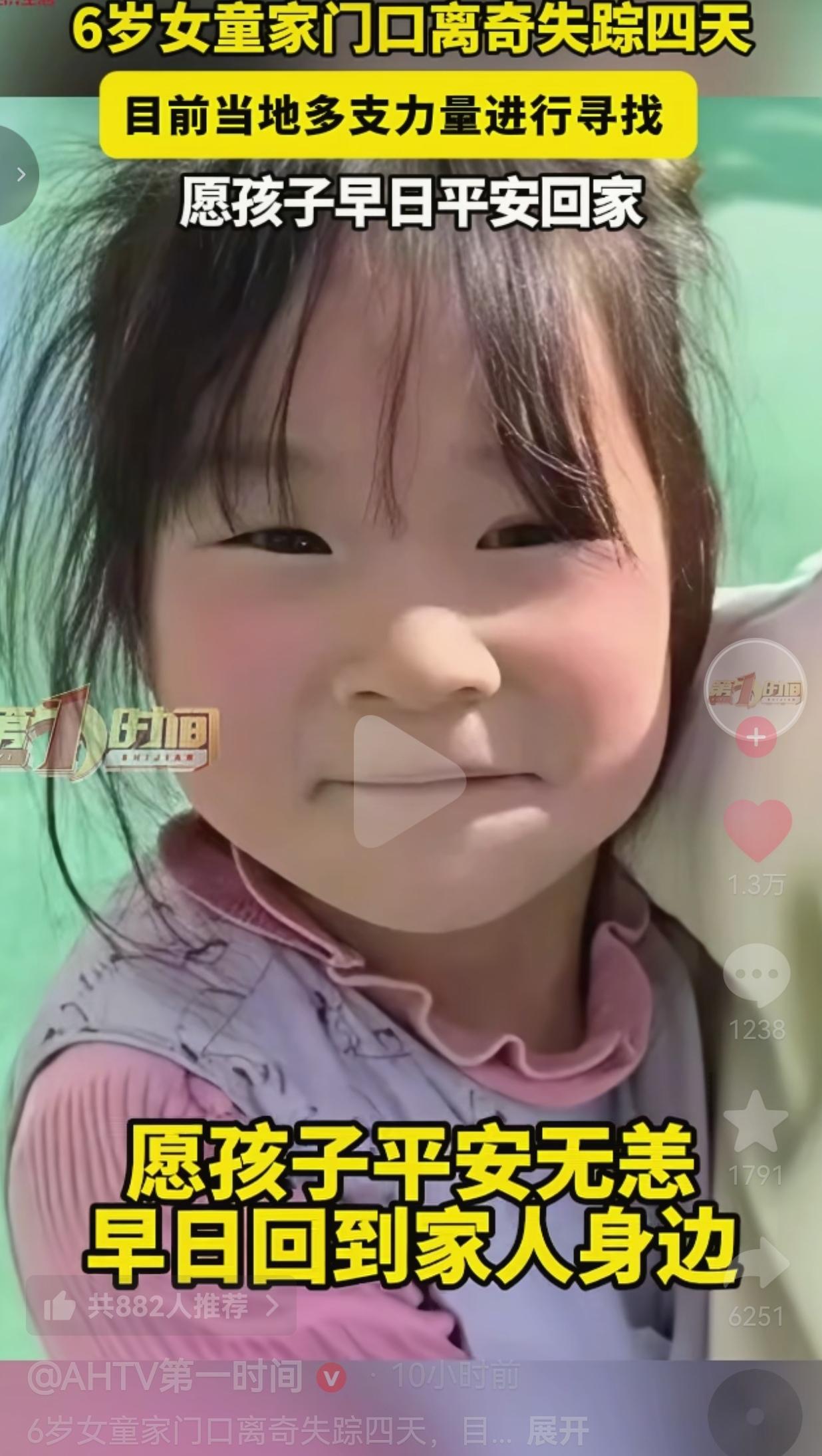 太揪心了!一名年仅6岁的小女孩,在家门口玩耍时突然失踪,家人急得发疯,多方寻找至今没有消息!恳请每一位刷到的朋友,花几秒钟留意一下,帮忙转发扩散! 这名小女孩今年只有6岁,正在上幼儿园大班,平时乖巧懂事。 某天晚上,孩子就在自家门口玩耍,家人只是短暂离开一会儿,回头就再也找不到孩子的身影! 一家人瞬间慌了神,疯了一样四处寻找,邻居也全部出动,可孩子就像凭空消失了一样。 无奈之下,家人只能立刻报警求助。 孩子的大致特征大家一定记好: 年龄6岁,身材瘦小,短发,圆脸 失踪时穿着彩色针织开衫、粉色内搭、卡通图案牛仔裤 性格胆小听话,不可能独自走远 事发之后,当地警方、救援队和志愿者全力展开搜寻,周边的山路、沟渠、废弃房屋、池塘全都仔细排查,可依旧没有任何有效线索。 每一天、每一小时,对孩子和家人都是煎熬! 这么小的孩子在外,有没有饭吃?有没有暖和衣服?会不会害怕? 想到这些,真的让人忍不住掉泪。 网友看到后评论说: 太揪心了!家门口都能不见,当爸妈的真要崩溃了!附近的朋友多留意一下! 也有的网友说: 看哭了!我家孩子也这么大,真的不敢想这种事发生在自己身上!求扩散! 还有的网友说: 我们帮不上别的,只能拼命转发!多一个人看见,孩子就多一分回家的希望! 也有的网友说: 不管是走失还是其他原因,一定要尽快找到孩子!孩子不能出事! 那么小的孩子,突然从家人身边消失,换谁都接受不了。 我们普通人也许不能参与现场搜救,但动动手指转发,就是最大的帮助。 不要觉得事不关己,孩子的安全,从来都和我们每个人有关。 多一次转发,就多一双眼睛; 多一次扩散,就多一份希望。 孩子是一个家庭的全部,是未来,是光。 我们不能让任何一个孩子,在黑暗里独自害怕。 孩子的一声“爸爸、妈妈”,就是一个家庭的全部。 现在,孩子还没回家,家人还在绝望等待。 我恳请看到这篇文章的每一个人:帮忙转发出去,让更多人看见!如果你在身边看到类似的孩子,请立刻报警!你的一次举手之劳,可能就挽救了一个家庭! 让我们一起,等孩子平安回家! 信息来源:AHTV第一时间
