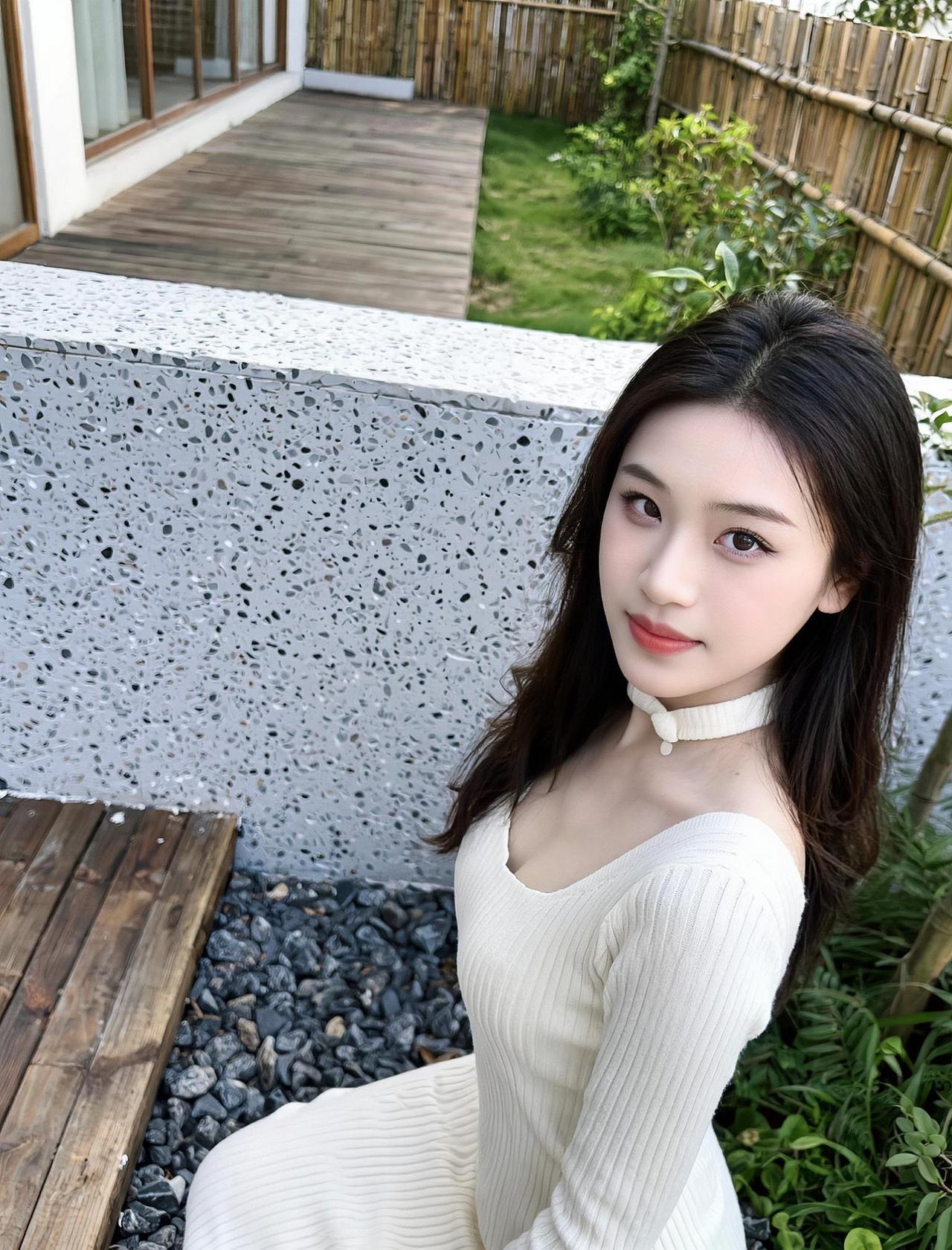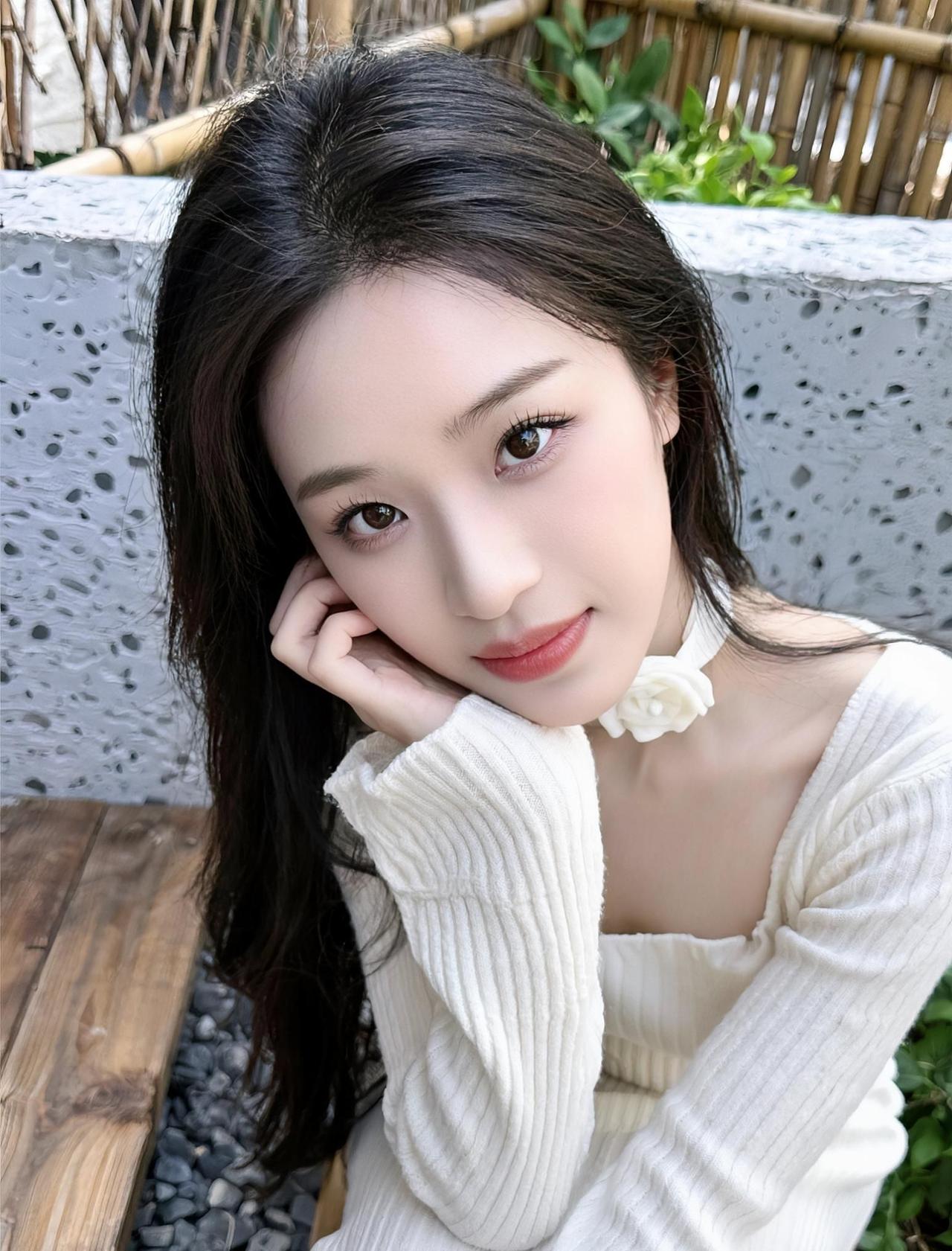 在柔软的白色针织衫下,是不经意流露的温柔与优雅。阳光透过发丝,洒在肩头,仿佛时间