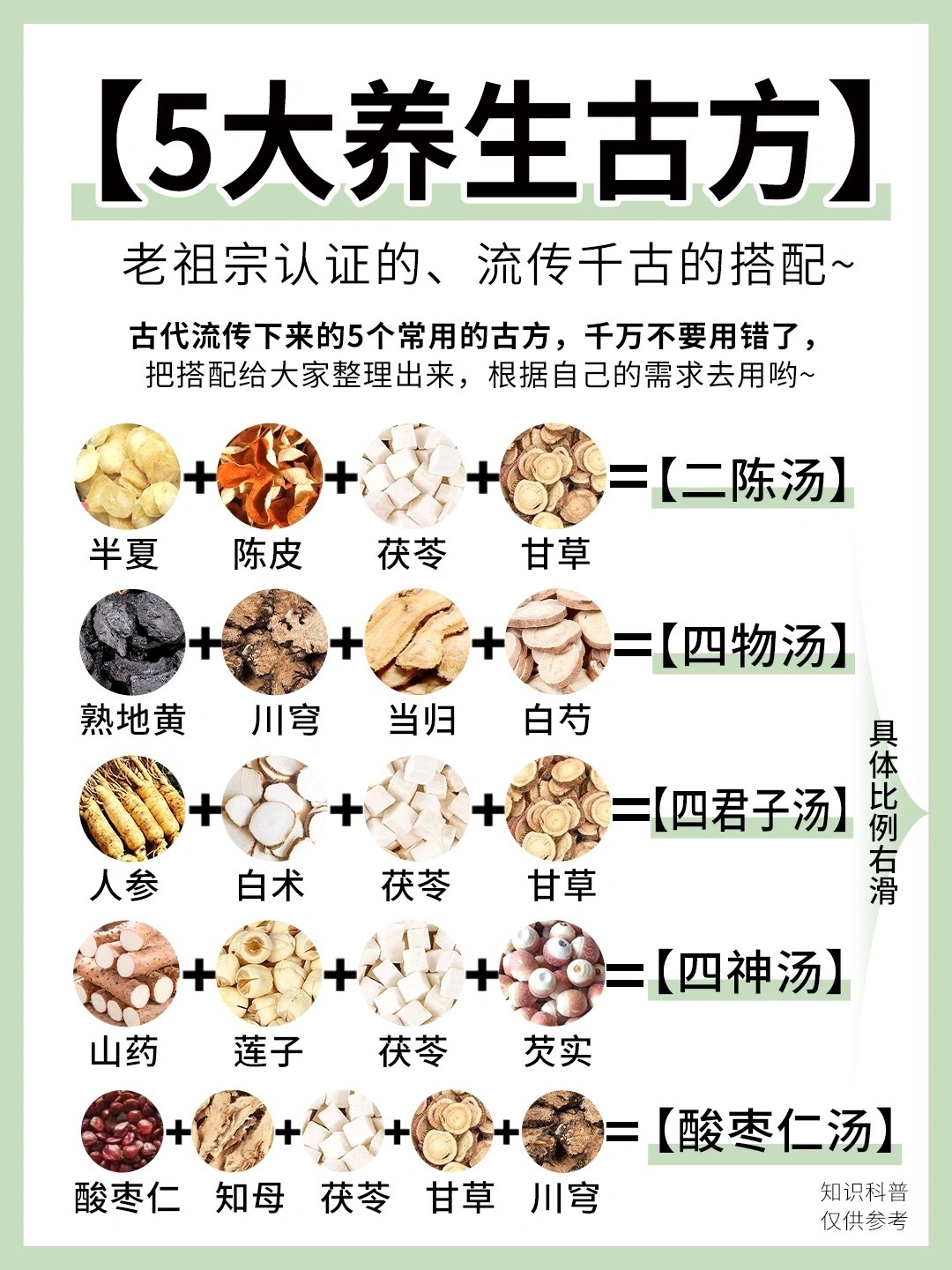 古代流传下来的5个常用的古方,千万不要用错了,把搭配给大家整理出来,根据自己的需求去用哟~