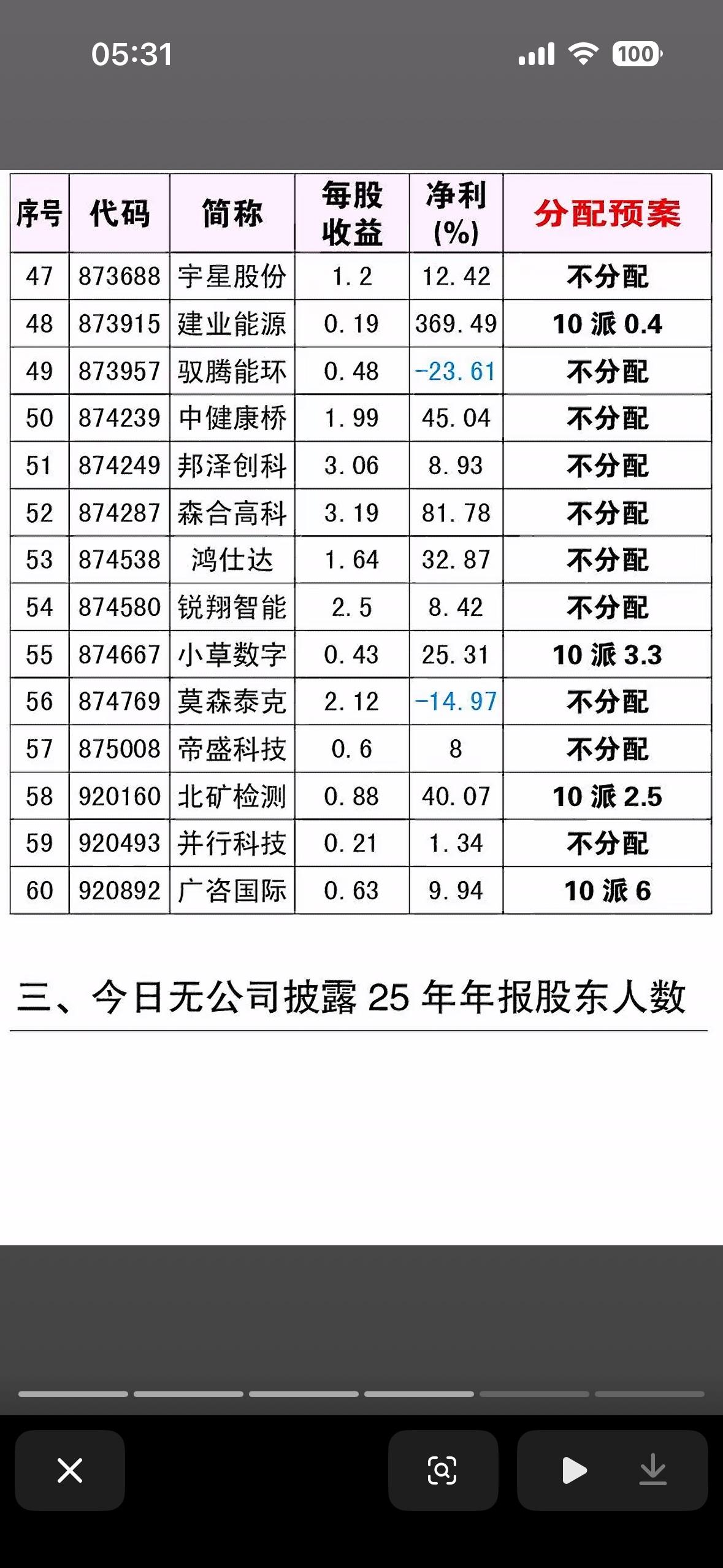 2025年年报揭秘66家公司的25年年报,深度解析! 2025年年报里66家公司的情况很值得深挖。就拿博腾股份来说,它2025年表现亮眼。营收同比增13.54%,结束下滑重回增长通道。小分子原料药业务是营收大头,新兴业务里新分子业务收入同比暴增224%,成新亮点。净利润扭亏为盈,归母净利同比增133.48%,主要得益于营收增长和降本增效。不过新业务还在投入期,对归母净利有影响但在减亏。 再看中远海控,25年全年分红1元/股,股息率6.62%,股东总数减少。股本减少,公司回购很良心。收入同比降6.14%,货运量却增5.76%,走量不走价。航运业务中美洲、欧洲收入下滑,亚太持平,国内增长;码头业务连续四年增长。