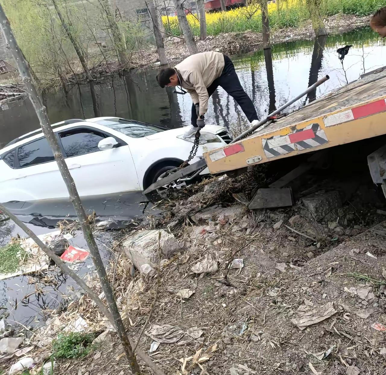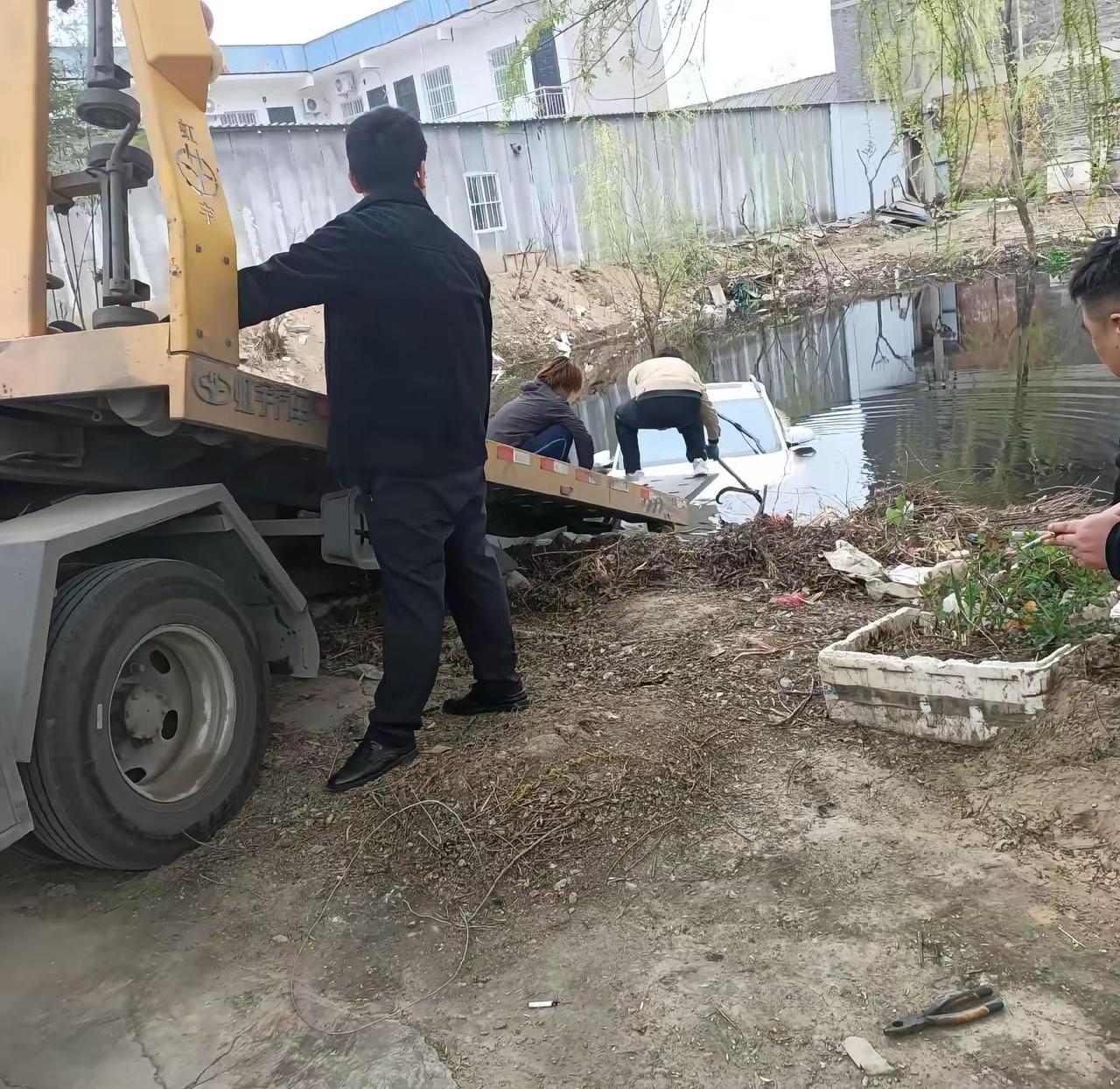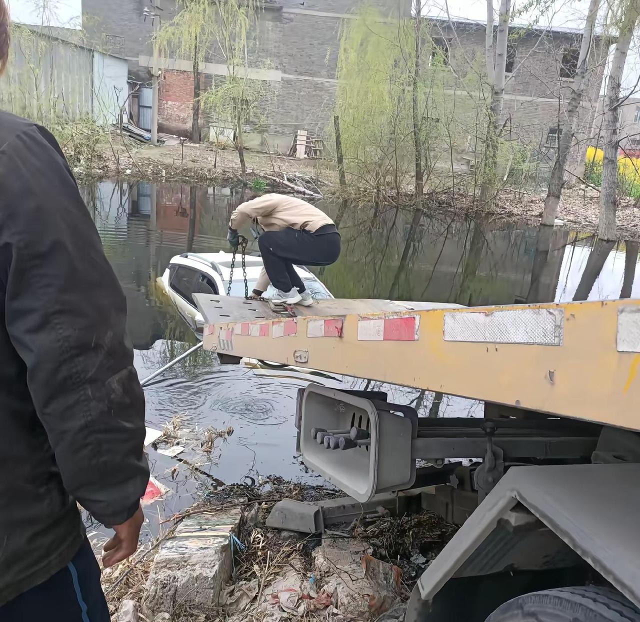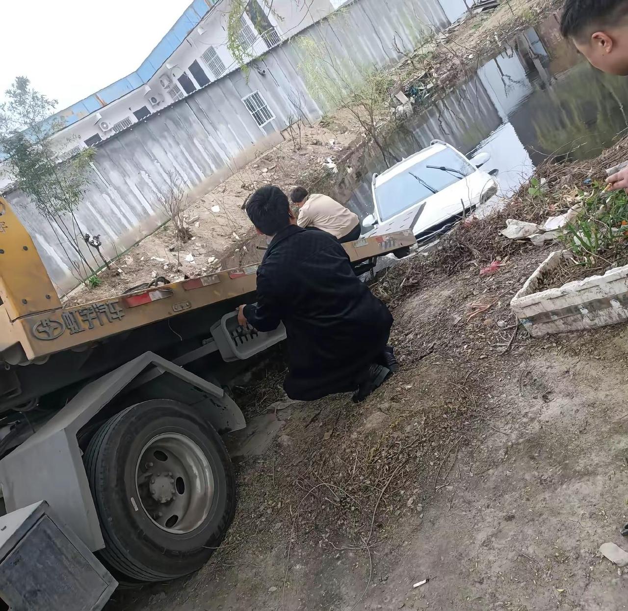 应急救援行动 汽车落水 救援现场 拖车 水上救援