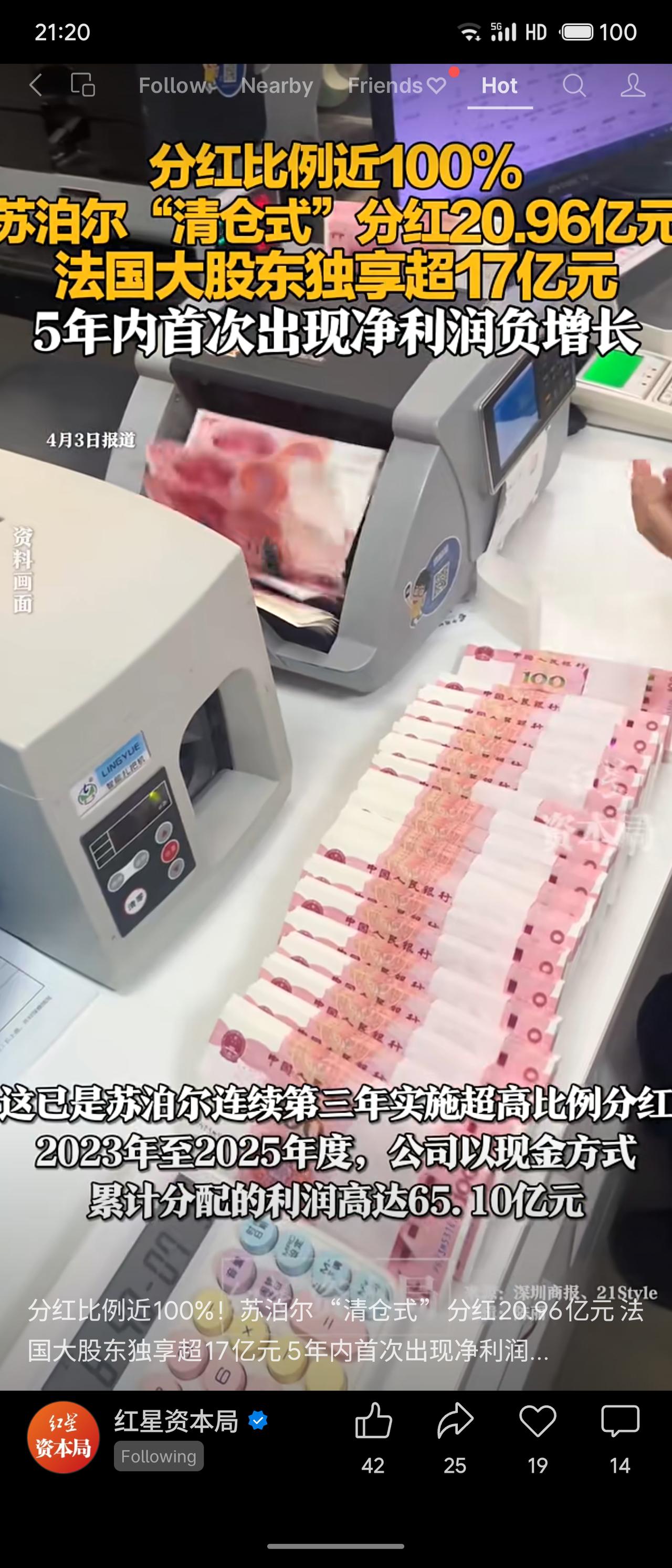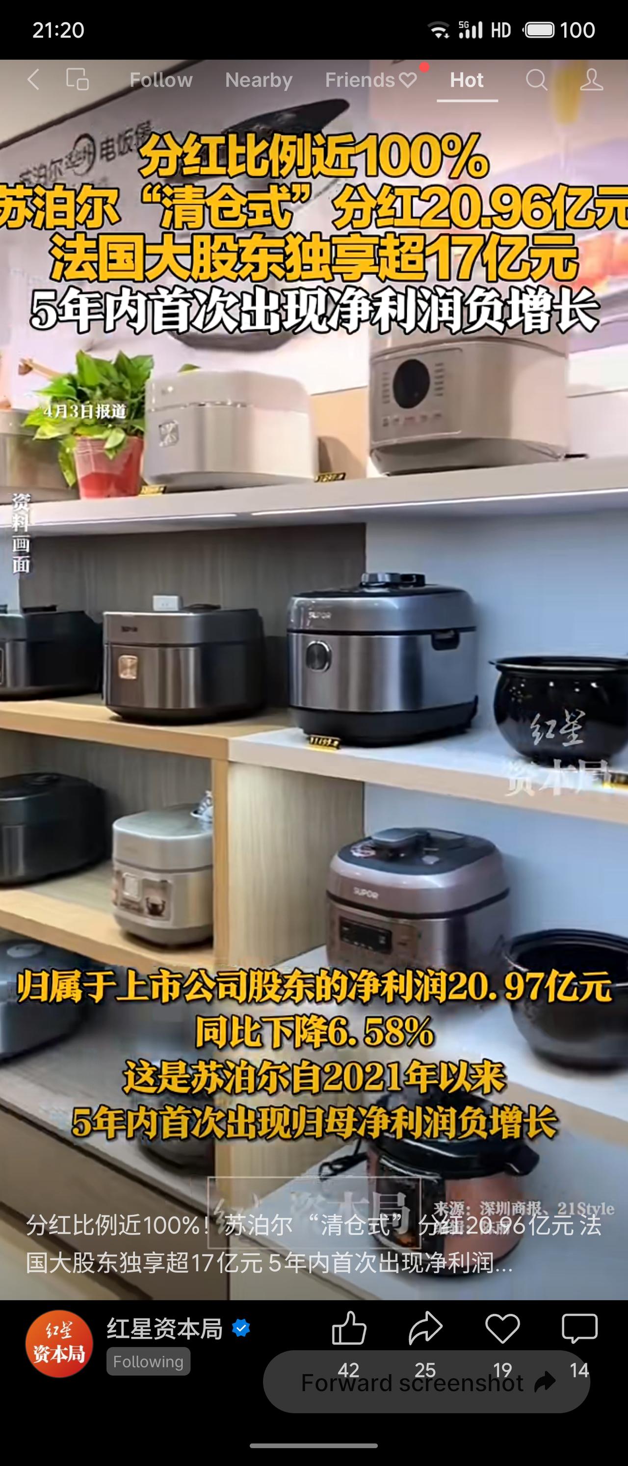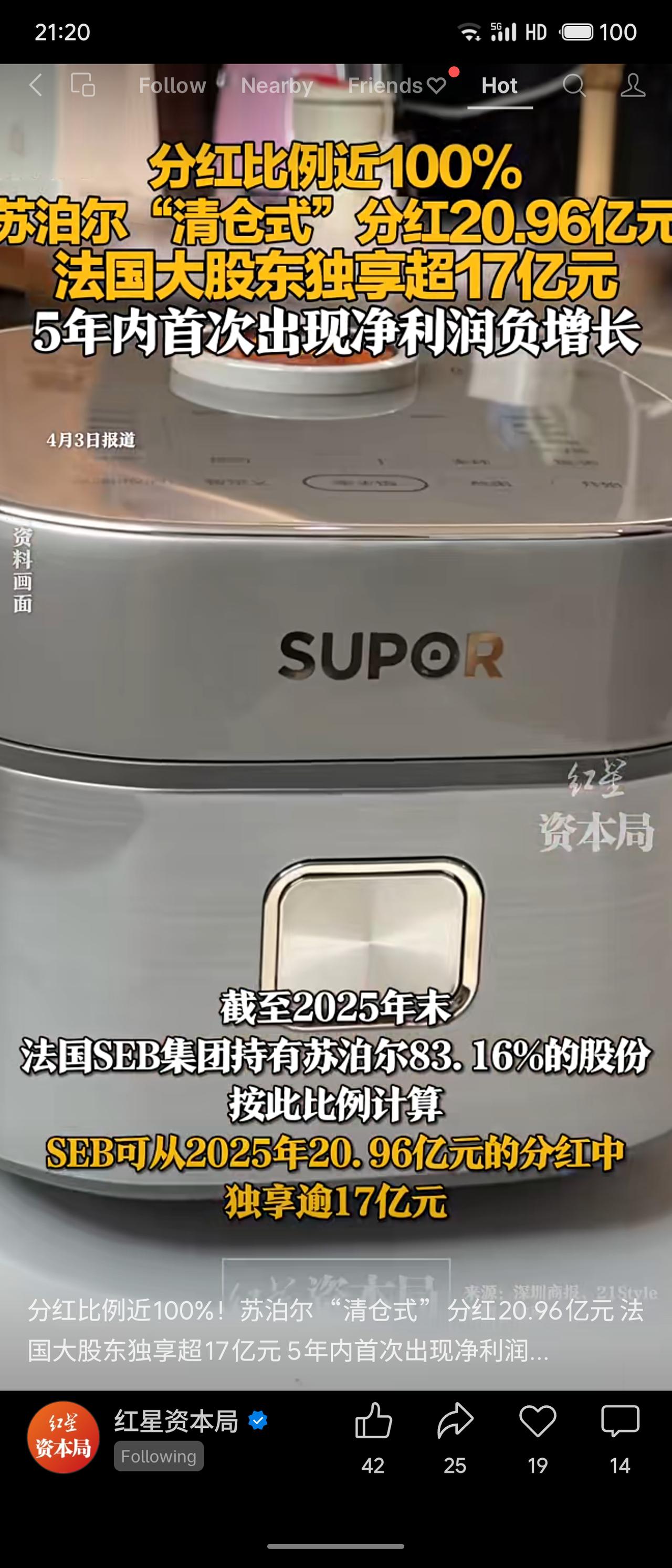 苏泊尔2025年年报显示:营收227.72亿元(微增1.54%),归母净利润20.97亿元(同比下降6.58%),为5年内首次负增长。公司仍推出“清仓式”分红方案,每10股派26.3元,合计20.96亿元,分红比例近100%。法国大股东SEB集团持股约81%,独享超17亿元。这是连续第三年超高分红,累计65.1亿元。 业绩承压却近乎分光全年利润,虽短期回馈股东,但长期发展资金被压缩,研发与转型或受制约。大股东巨额获利,中小股东仅分小头,公司治理偏向大股东利益。这种“竭泽而渔”式分红,需警惕企业内生增长乏力。