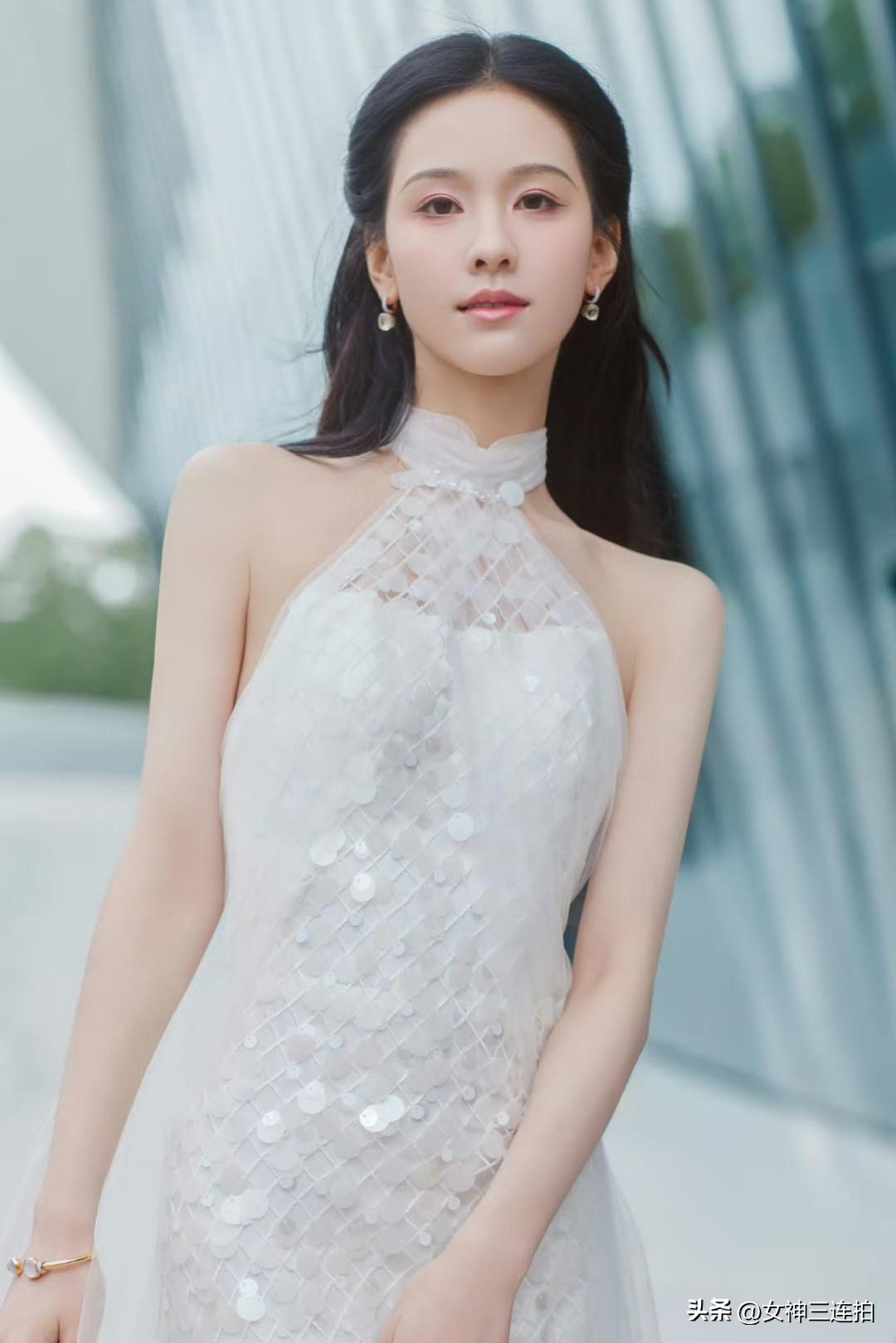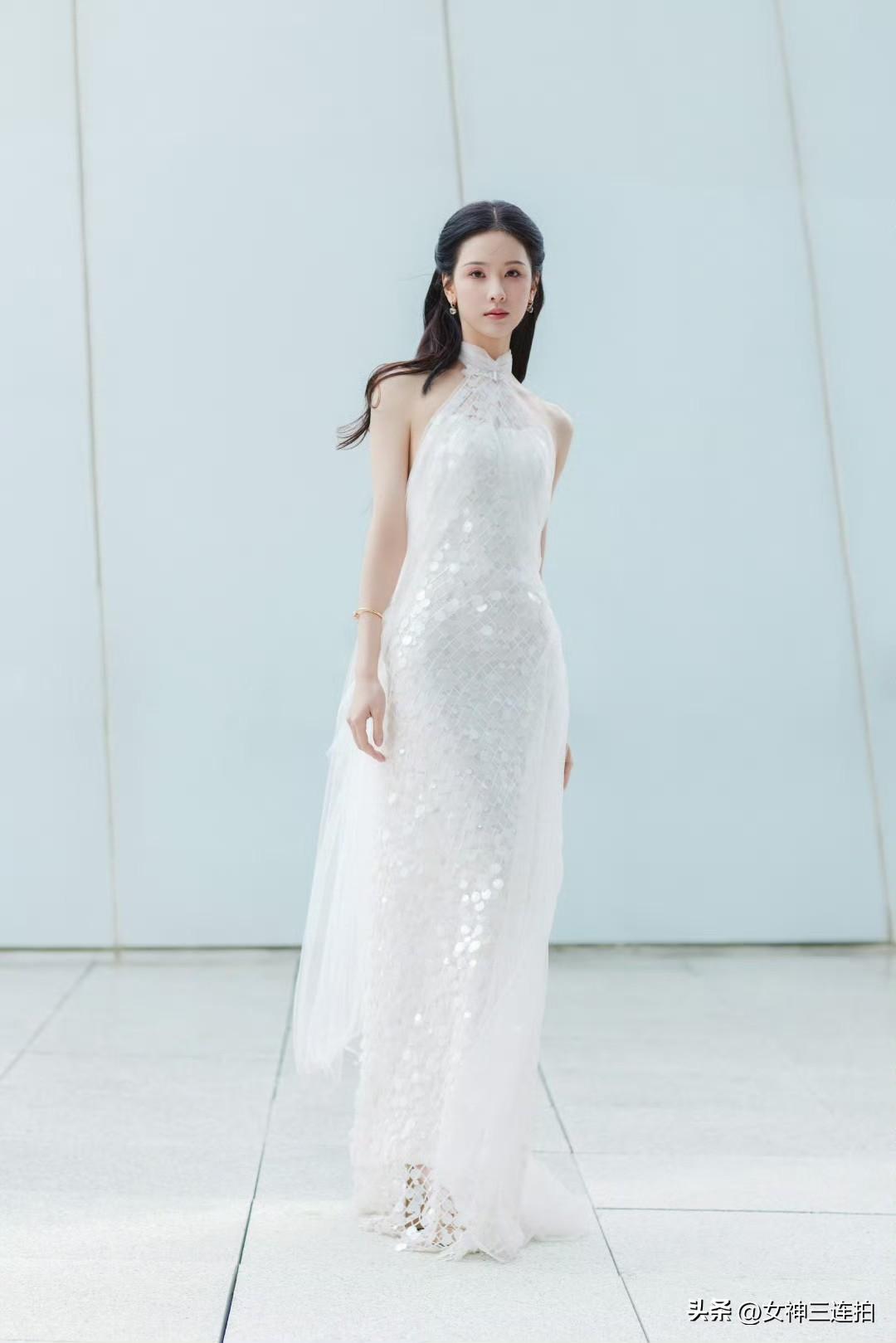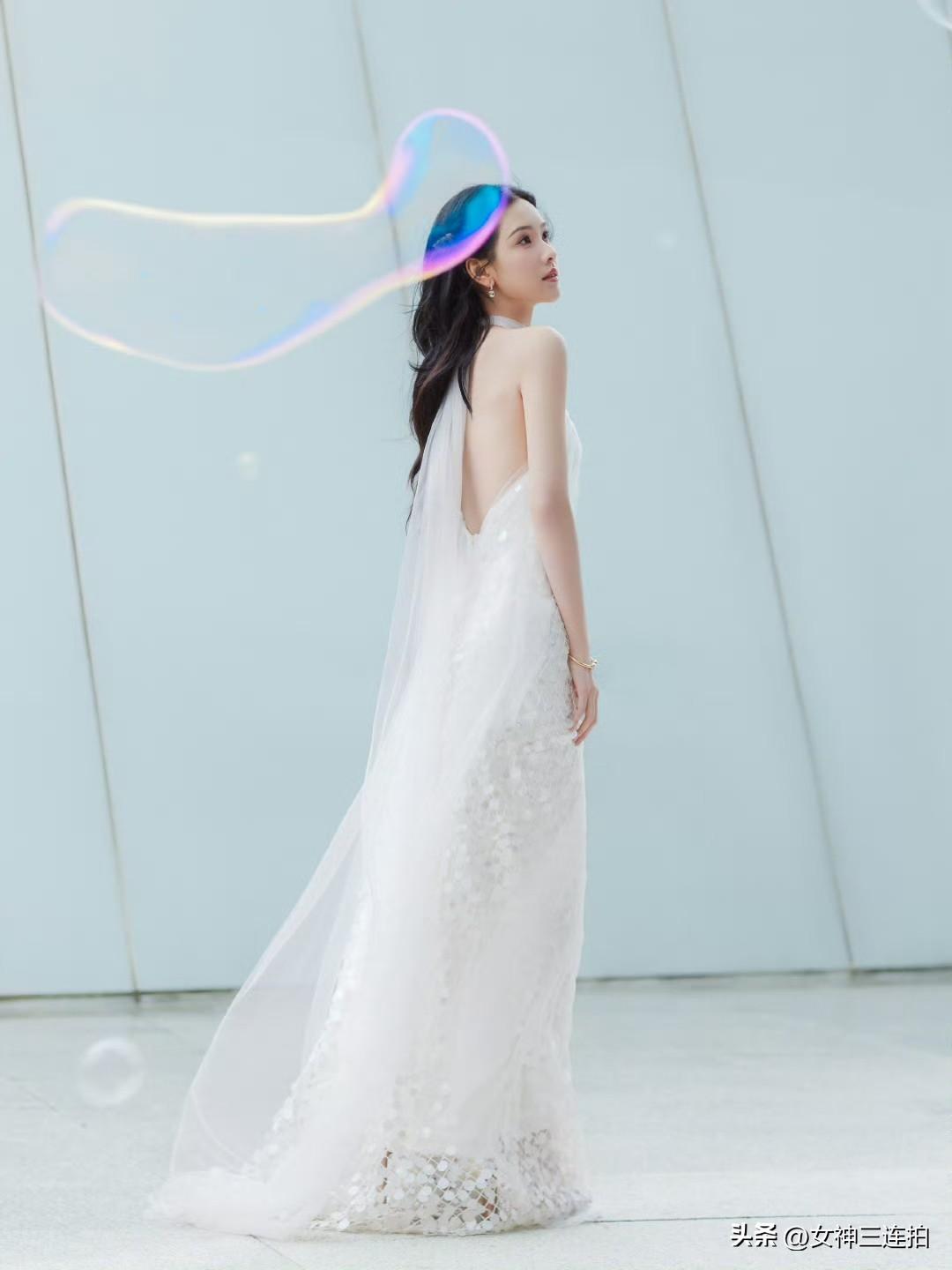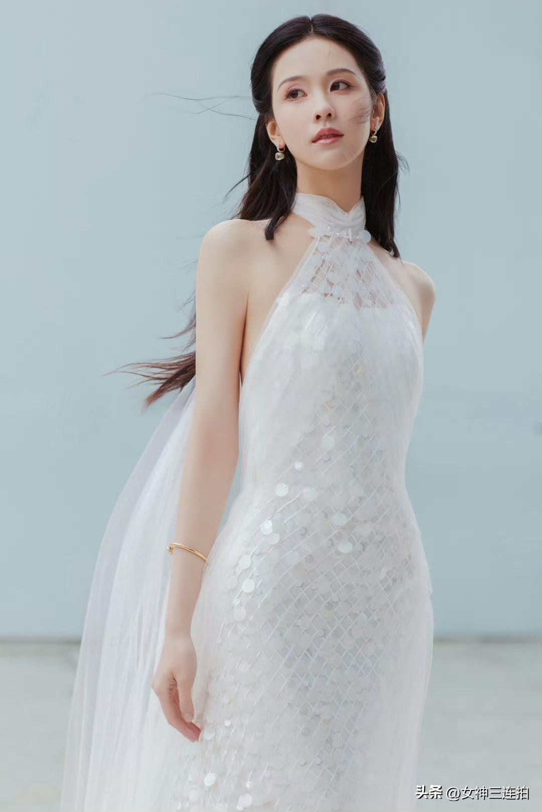 优雅白裙,现代建筑下的时尚大片