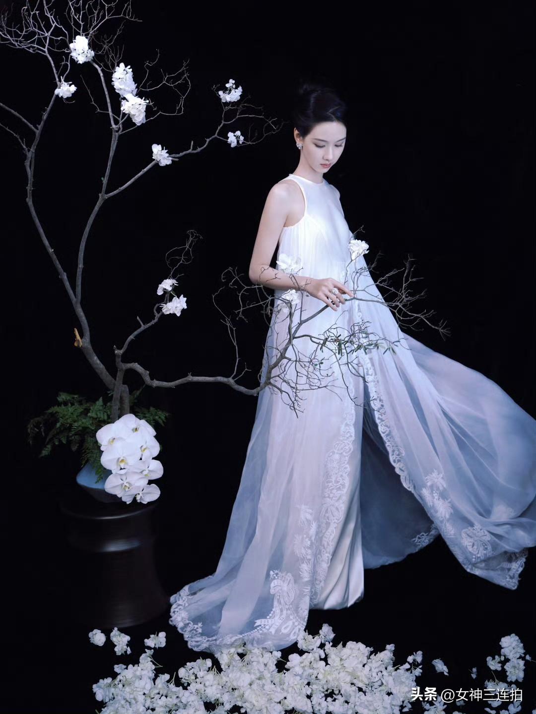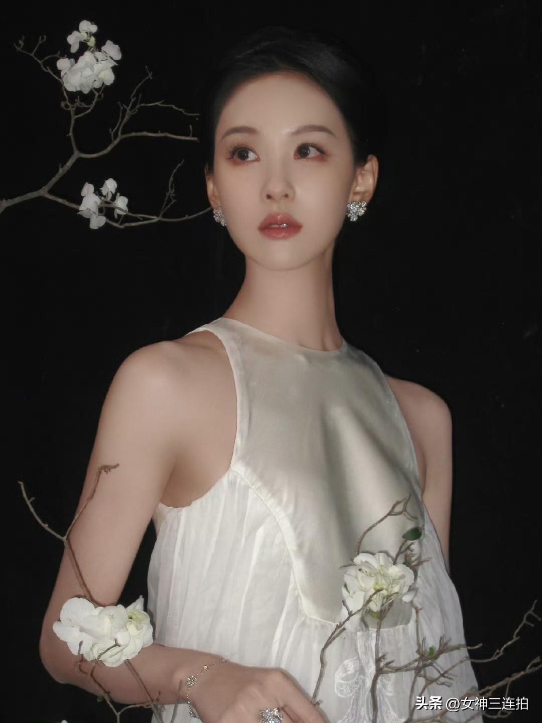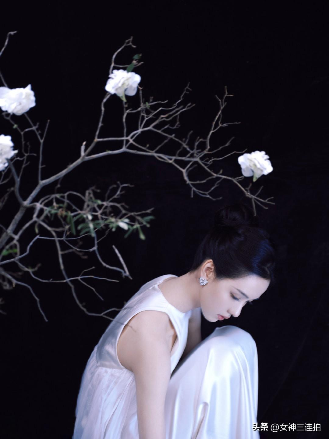 美女梦幻白衣女子,与花枝共舞