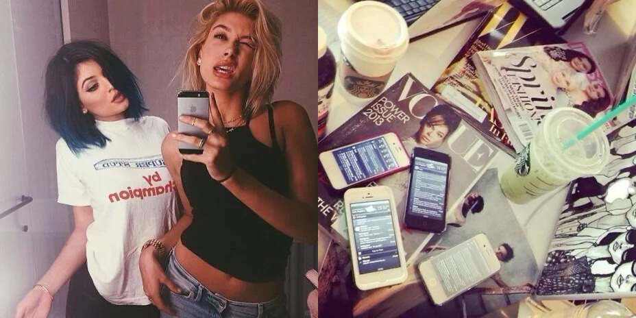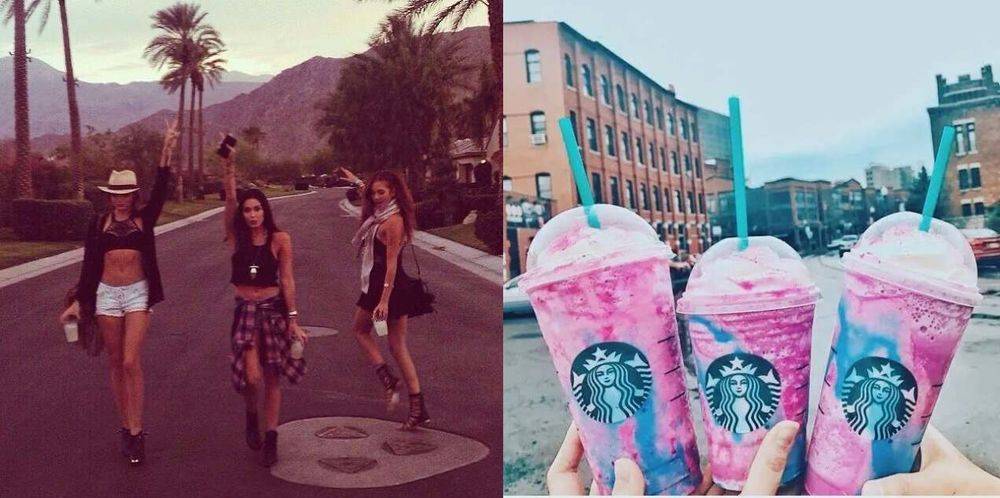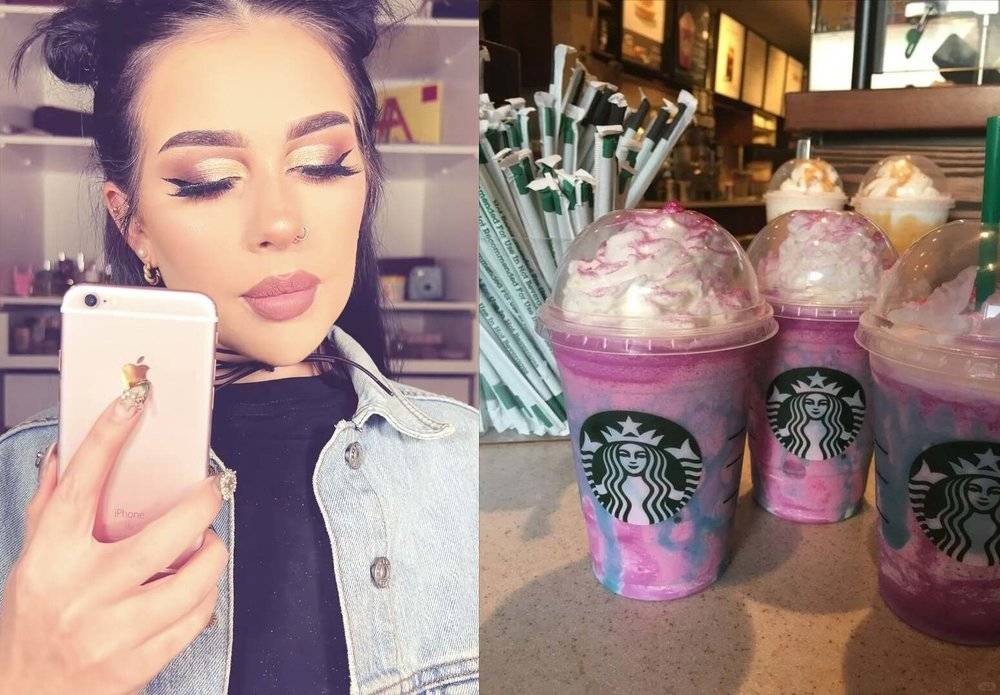 放在国外,是Snapchat的狗狗耳朵滤镜、粉色的限定星冰乐、eos球型润唇膏、玫瑰金配色的iPhone6、挑染的星空色头发。