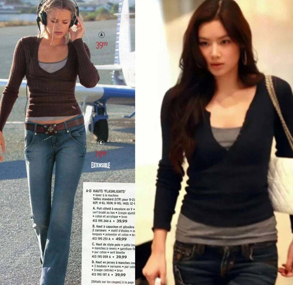 Hollister小海鸥又回来了,斜肩上衣和亨利衫也悄悄魂兮归来。港女乐基儿千禧年的街拍变成了女装店打板制衣的素材。