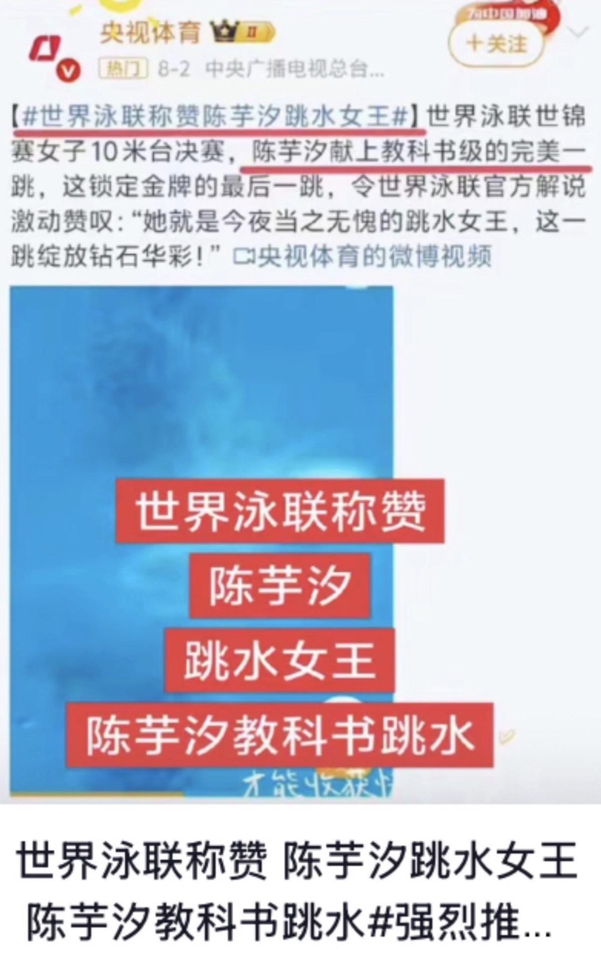 世界泳联官方盖章认证: 陈芋汐,跳水女王 央视体育2025年8月2日报道: 世界泳联新加坡世锦赛女子10米台决赛,陈芋汐献上教科书级的完美一跳。 最后一跳,锁定金牌的那一刻, 世界泳联官方解说激动赞叹: "她就是今夜当之无愧的跳水女王, 这一跳绽放钻石华彩!" 不是网友投票,不是粉丝封的。 是世界泳联官方, 当着全球观众的面,亲口盖章认证。 为什么世界泳联称她为"女王"? 因为她的成绩单, 放在世界跳水历史上, 是炸裂级的存在: 因为她18岁跳457.85分一一 成年后世界纪录,世锦赛历史最高分。 因为她20岁还能跳430+ 一一 是中国🇨🇳女子10米台跳水史上, 唯一穿越发育关还能站在巅峰的人, 并打破"20岁魔咒"第一人。 因为她世锦赛四冠王一一历史第一人 伏明霞、陈若琳都未曾做到。 因为她世界杯总决赛四连冠一一 统治级霸权 不是赢一次,不是赢两次, 是连续四年,每一次都站在最高领奖台。 2025年全年14冠、全部400+ 一一 统治力写进数字里。 因为四年13次战胜"跳水天才"全红婵 一一这是事实。 不是靠运气,不是靠对手失误。 是硬碰硬,13次站在最高领奖台。 她靠什么统治? 别人靠肌肉记忆,练到伤痕累累。 她靠思维记忆一一看几遍、想几遍, 上场就能成,还越跳越稳。 教练说:"她聪明到骨头里。" 世界泳联说: 她的最后一跳"绽放钻石华彩"。 那一跳,4个10分,1个9.5分, 无限接近完美。 不是靠运气赢一次, 是靠实力赢一辈子。 最后说一句 女子10米台, 周继红、伏明霞、陈若琳之后, 中国🇨🇳跳水等了很久很久, 终于等来了一个名字一一陈芋汐。 具有统治力的人, 才能真正被称"女王"。 陈芋汐在10米台统治了7年,还在继续。 不是流星划过。不是昙花一现。 是统治7年,还在继续的王者。