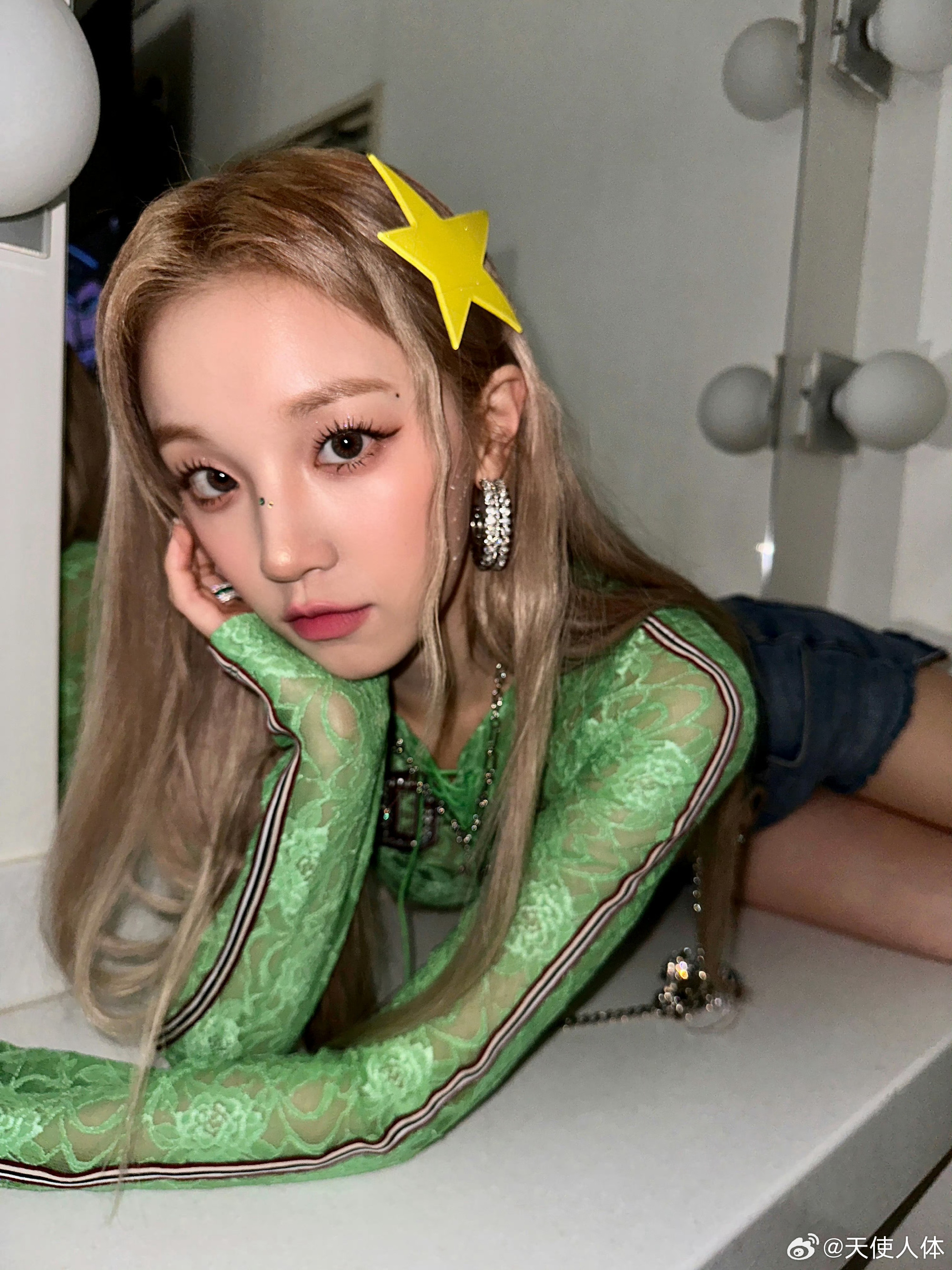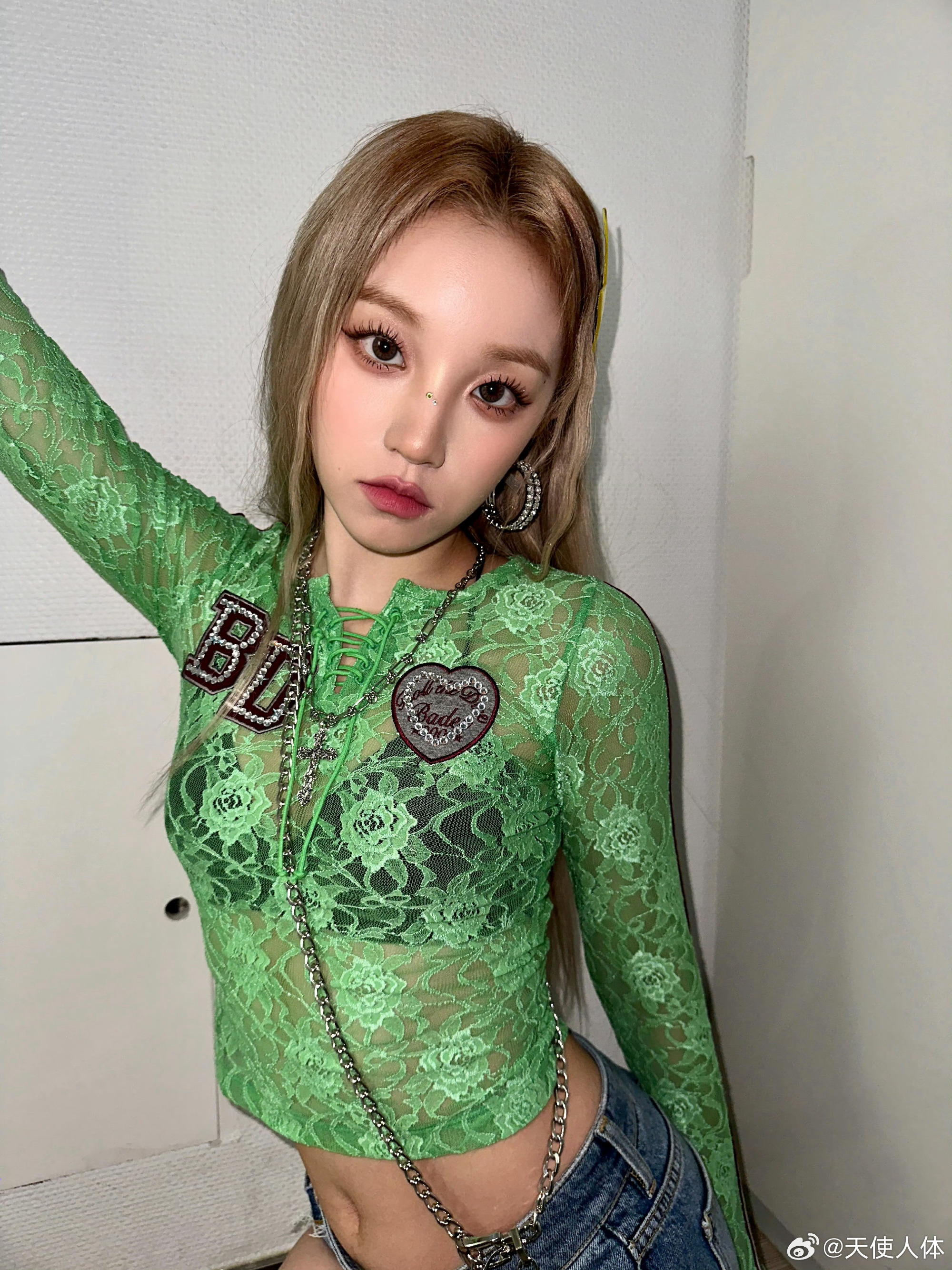 宋雨琦,绿色蕾丝+牛仔,这青春感满溢的穿搭好绝。宋雨琦