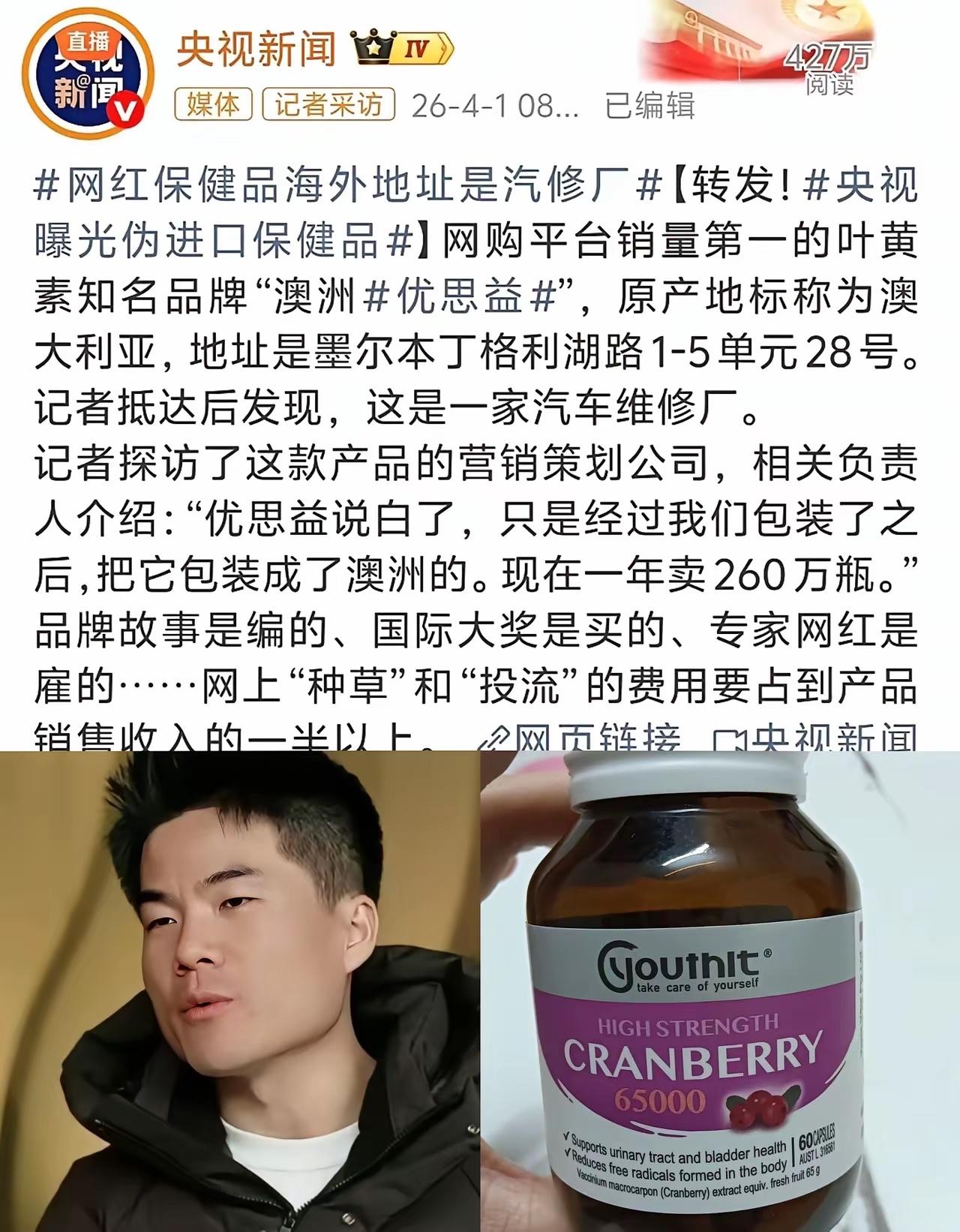 优思益这一次把许多网红的遮羞布全部给扒了下来,为什么会有那么多网红不遗余力的去卖优思益?我觉得很大一种可能就是这个产品他们分成高提成多,天下熙熙攘攘皆为利益!你们以为这些网红天天起早贪黑的在直播间费力的维持人气卖货是为了爱?是为了家人们的健康着想?说白了就是为了掏空他们家人们的钱包! 其实优思益这样假洋品牌的案例很多,什么服装食品多的数不胜数!特别是早些年国人崇洋媚外严重的时候,许多服装就弄个英文字母,再在国外搞个场地注册一家公司和商标,就称为洋品牌了!就能卖个好价钱!许多人还因为穿这样的品牌洋洋得意,自以为高人一等!然而国人早些年就信这一套,导致这种操作蔚然成风!其实许多都是浙江福建这些地方的商人操盘! 如果某一天某些国外大品牌的保健品被爆出原来是我们同胞操盘的,我一点都不会觉得意外!据说金枕头榴莲和车厘子樱桃就是我们同胞是幕后导演,愣是把一些地方特色水果弄成高大上的金贵品,是有钱人吃的东西!这种事我还怀疑是在大A股股市里面积累的经验!屡试不爽!