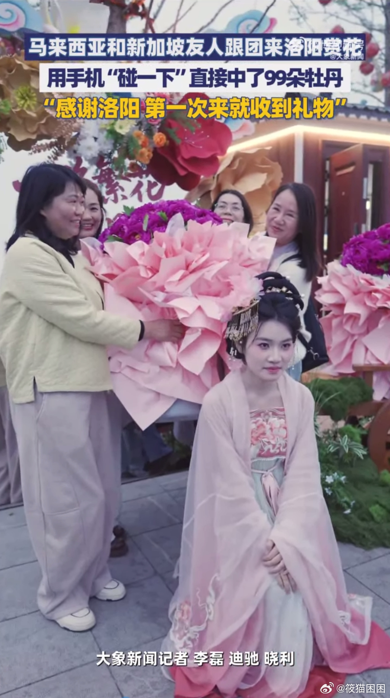 外籍友人组团来洛阳赏花洛阳赏花也太火了吧!满城牡丹开得超惊艳,雍容华贵超有氛围感,连外籍友人都组团来打卡,这春日盛景谁能不爱呀!
