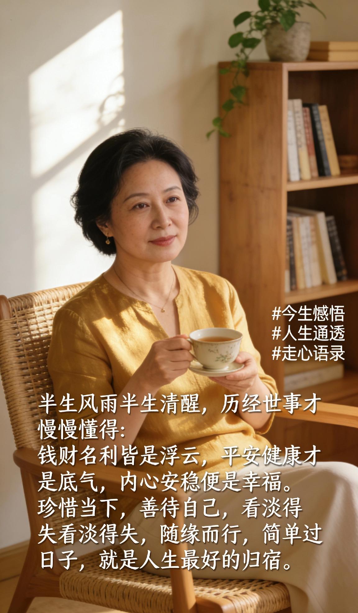 半生风雨半生清醒,历经世事才慢慢懂得:钱财名利皆是浮云,平安健康才是底气,内心安